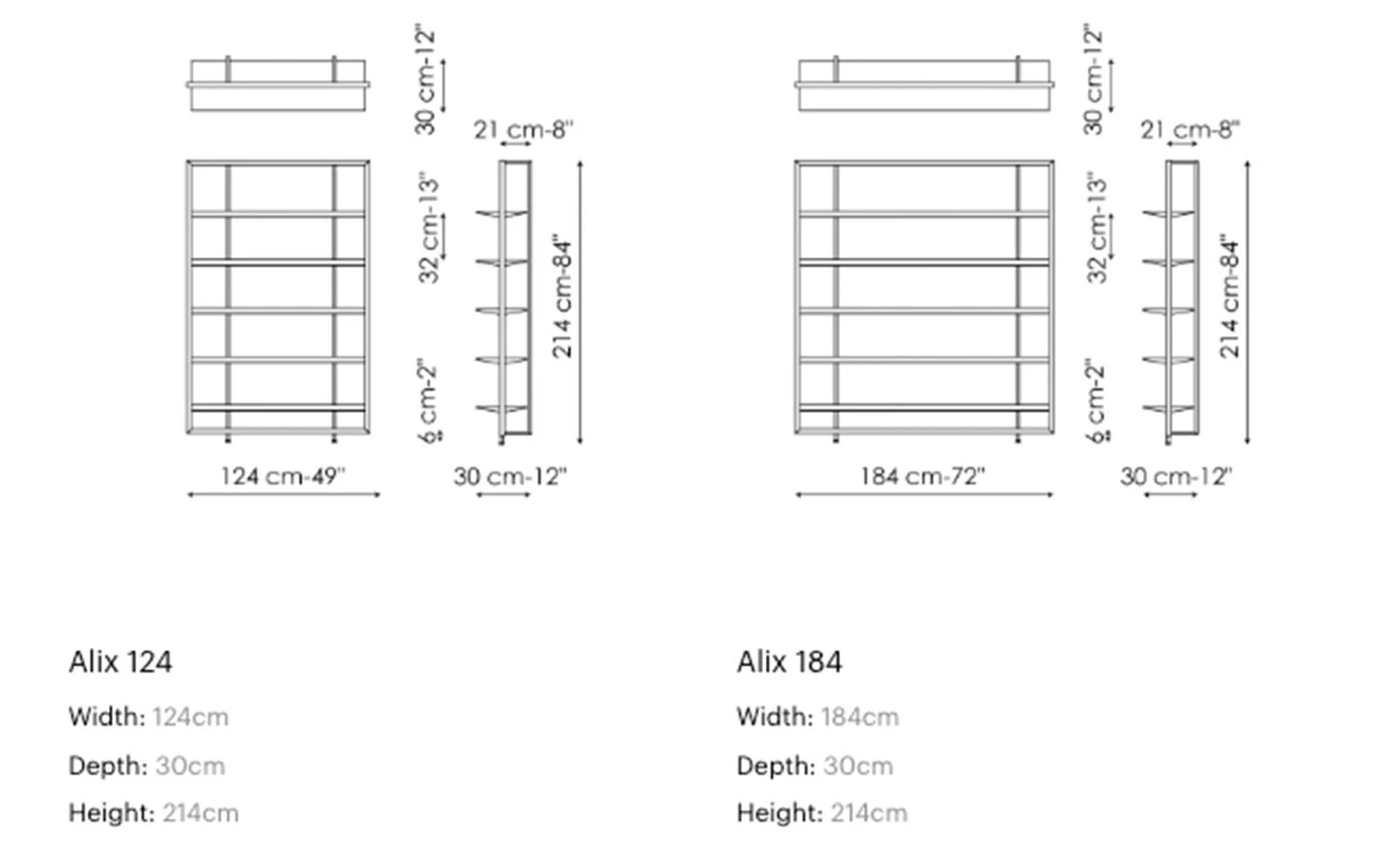 ALIX е италианска библиотека от колекцията на италианския производител Bonaldo. Външна структура на библиотеката от дърво в естествен фурнир. Вътрешна структура и рафтове от метал – финиш по избор на клиента. Цената на библиотеката се формира на база на избора на размер и финиши.
