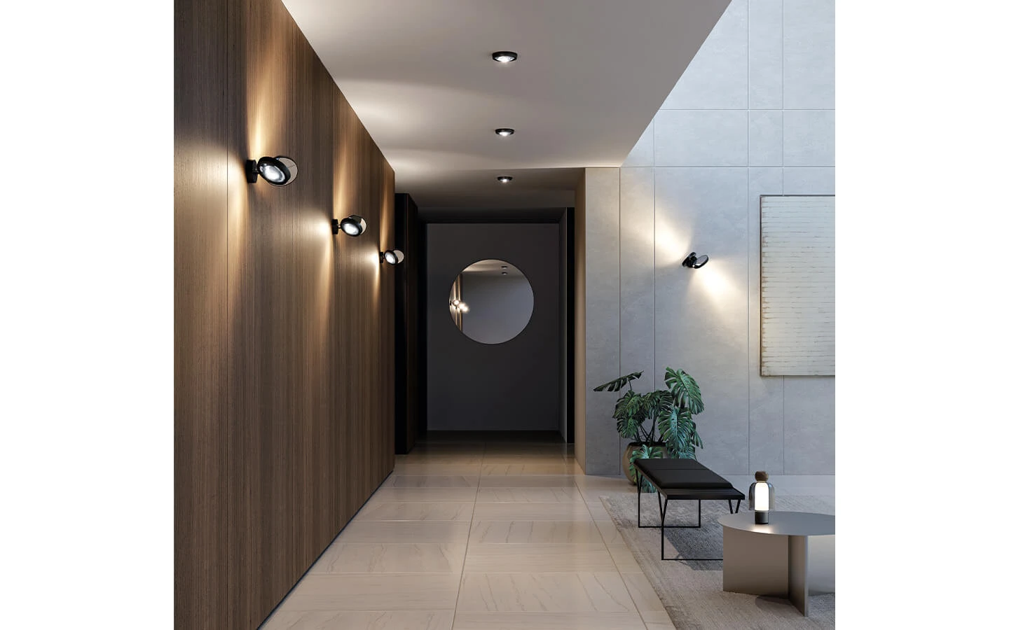 NAUTILUS от LODES е функционален и елегантен аплик с модерен технически характер, създаден да осигурява прецизно насочена светлина с висока ефективност. Дизайнът му се отличава с компактна цилиндрична форма и регулируема глава, която позволява гъвкаво насочване на светлинния лъч според нуждите на пространството. Изработен от алуминий с прецизна обработка и изчистен силует, моделът се вписва отлично както в съвременни жилищни интериори, така и в хотелски или обществени среди. Интегрираният LED източник гарантира силна, концентрирана светлина с висока цветопредавателна способност, подходяща за акцентно осветление, подчертаване на архитектурни детайли или създаване на атмосферни светлинни сцени. NAUTILUS съчетава техническа прецизност, минимализъм и функционалност, превръщайки се в дискретен, но въздействащ светлинен акцент в интериора.