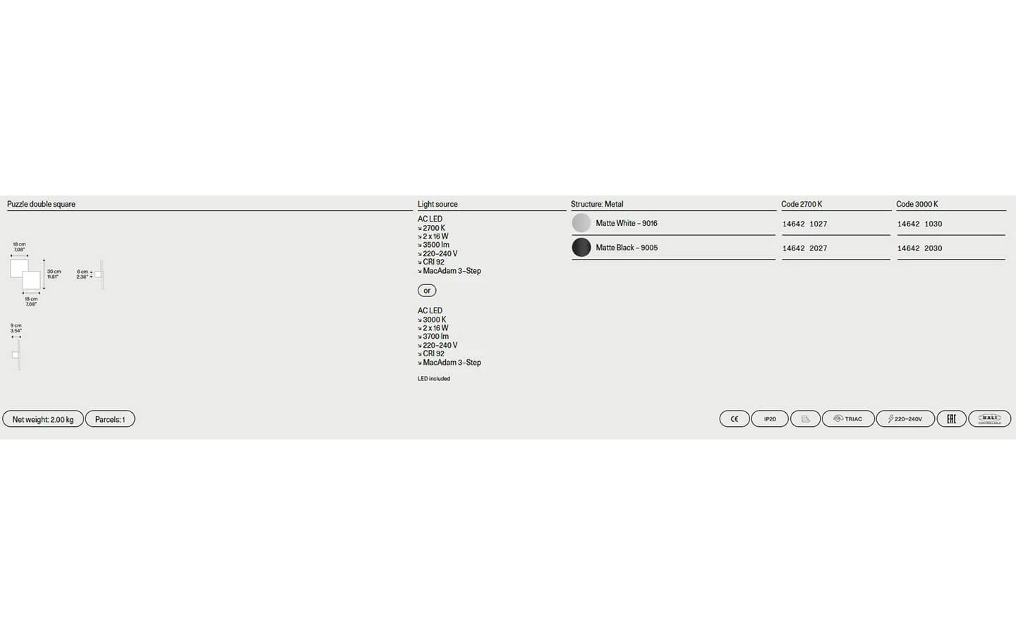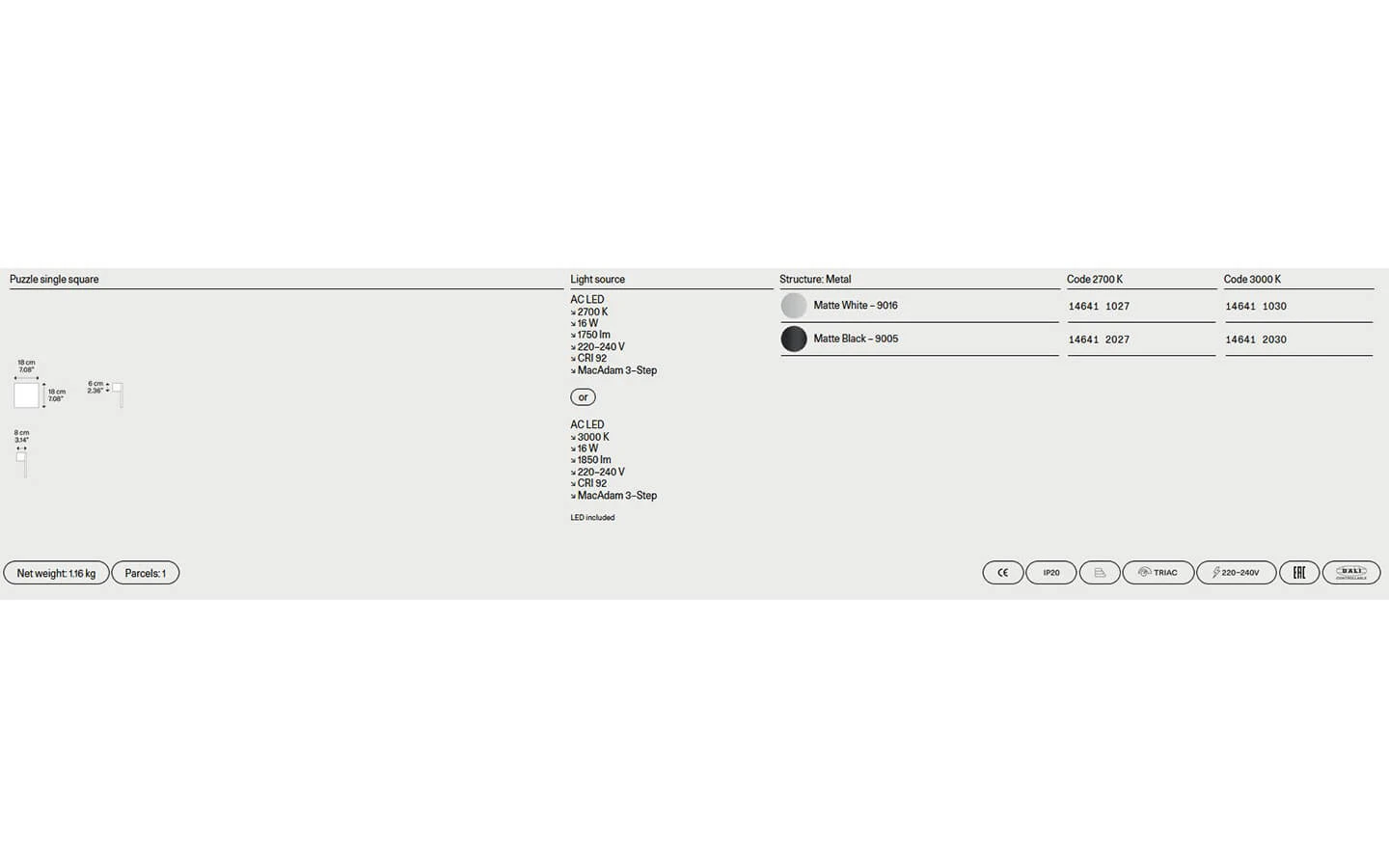 PUZZLE от LODES е модерен аплик с изразен геометричен характер, който превръща стената в активен елемент от интериорната композиция. Дизайнът се отличава с изчистени линии и тънък профил, а формите могат да бъдат комбинирани в различни конфигурации, създавайки индивидуални светлинни решения с графичен ефект. Индиректната LED светлина се разпръсква меко по повърхността, оформяйки игра на светлина и сенки, която придава дълбочина и динамика на пространството. Подходящ както за жилищни, така и за обществени интериори, PUZZLE съчетава минимализъм, функционалност и артистично присъствие, превръщайки се в стилен архитектурен акцент.