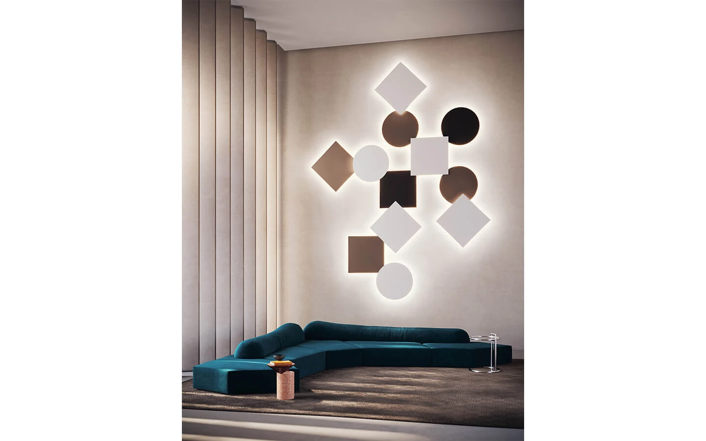 PUZZLE MEGA от LODES е впечатляващ аплик с архитектурен характер и силно изразено декоративно присъствие, създаден да превърне стената в динамична светлинна композиция. Дизайнът се отличава с геометрични форми, които могат да бъдат комбинирани в различни конфигурации, създавайки индивидуални светлинни решения с графичен ефект. Изчистените линии и тънкият профил придават минималистична елегантност, докато индиректната LED светлина се разпръсква меко по повърхността на стената, оформяйки впечатляваща игра на светлина и сенки. PUZZLE MEGA е подходящ както за модерни жилищни пространства, така и за обществени интериори, където осветлението има не само функционална, но и силно естетическа роля. Това е аплик, който съчетава технологична прецизност и артистична свобода, превръщайки се в акцентен елемент в съвременния интериор.