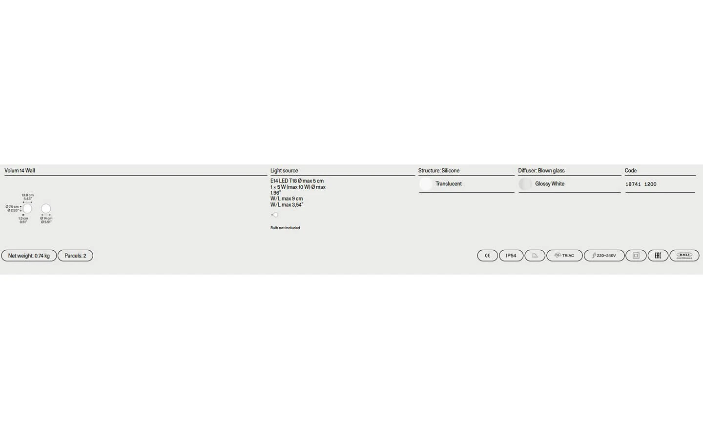 Посочената цена е за аплик Volum 14 за монтаж за стена.