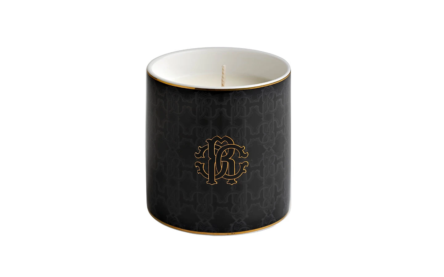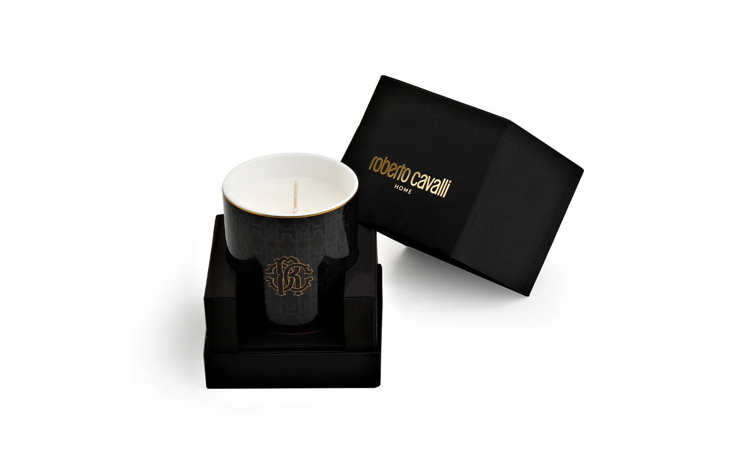 Ароматна свещ Black Monogram Gold от Roberto Cavalli Home Luxury Tableware. Тази свещ е идеалното допълнение към всеки дом. Продуктът е опакован в луксозна кутия, подходящ и за подарък.