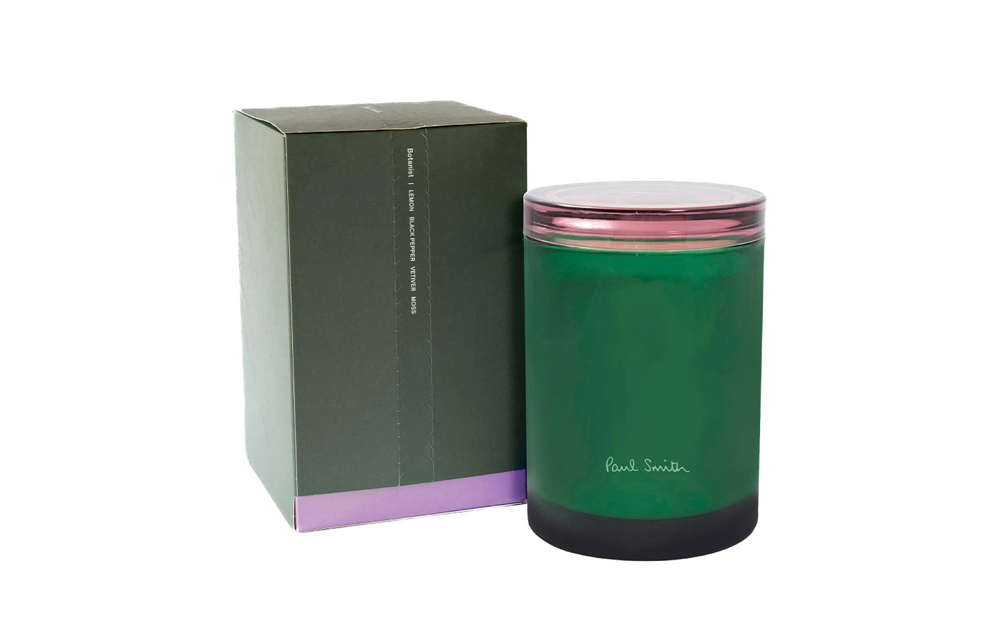 Ароматна свещ BOTANIST 1KG от колекцията на Paul Smith. Изработен от стъкло в два цвята с допълващи се тонове, всеки съд е специално проектиран за многократна употреба. Предлага се с капак, който служи като подложка за защита на повърхностите от топлина и разливи. Взаимодействието между светлина и цвят е основен елемент при дизайна на тези впечатляващи ароматни свещи, които, когато са осветени, деликатно напомнят за емблематичното райе на Paul Smith.
