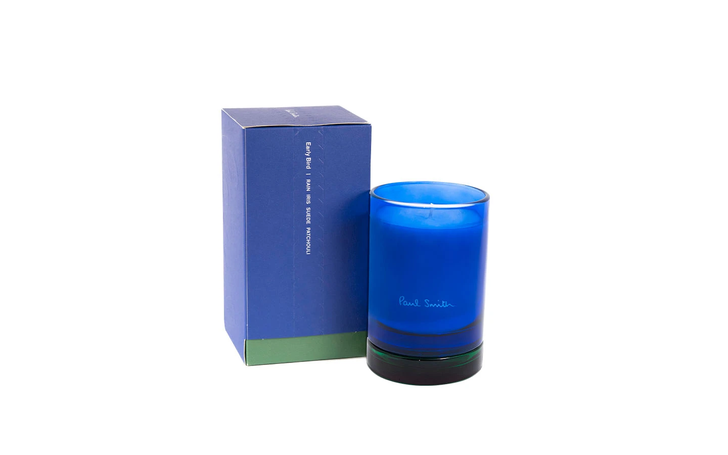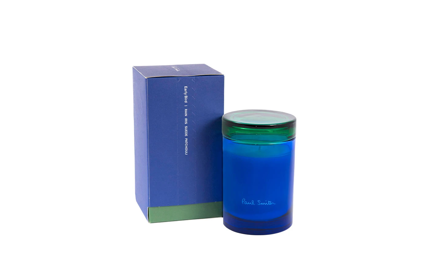 Ароматна свещ EARLY BIRD 240G от колекцията на Paul Smith. Изработен от стъкло в два цвята с допълващи се тонове, всеки съд е специално проектиран за многократна употреба. Предлага се с капак, който служи като подложка за защита на повърхностите от топлина и разливи. Взаимодействието между светлина и цвят е основен елемент при дизайна на тези впечатляващи ароматни свещи, които, когато са осветени, деликатно напомнят за емблематичното райе на Paul Smith.