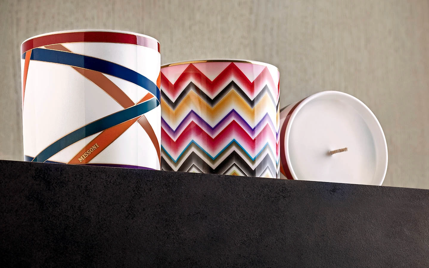 Ароматна свещ Iconic от Missoni Home Collection. Тази свещ е идеалното допълнение към всеки дом. Продуктът е опакован в луксозна кутия, подходящ и за подарък.