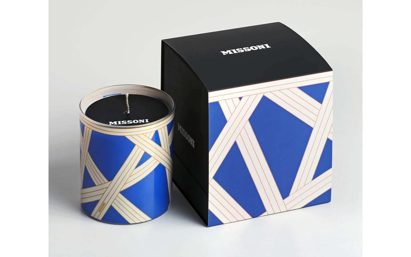 Ароматна свещ Nastri Bicolore Blue от Missoni Home Collection. Тази свещ е идеалното допълнение към всеки дом. Продуктът е опакован в луксозна кутия, подходящ и за подарък.
