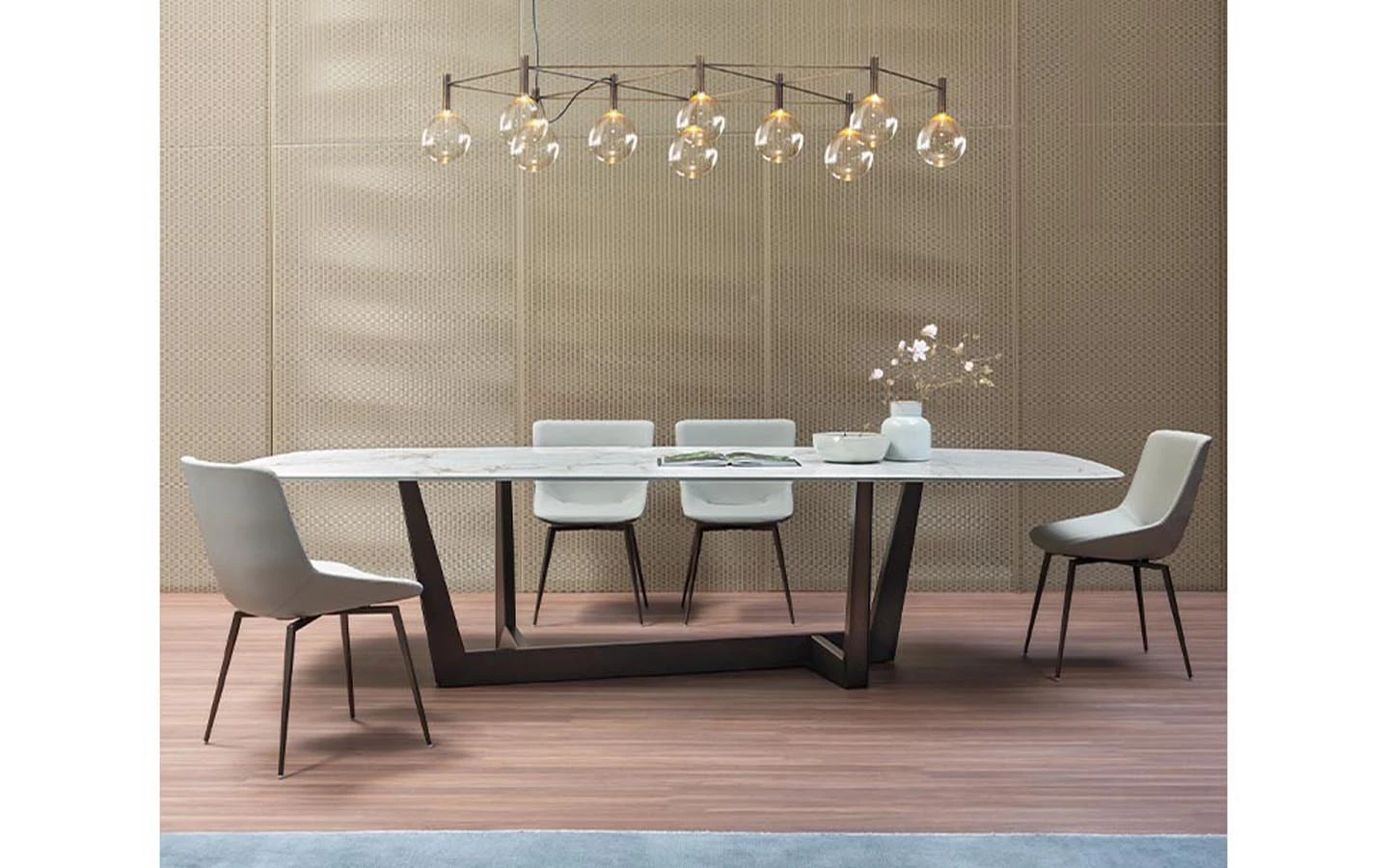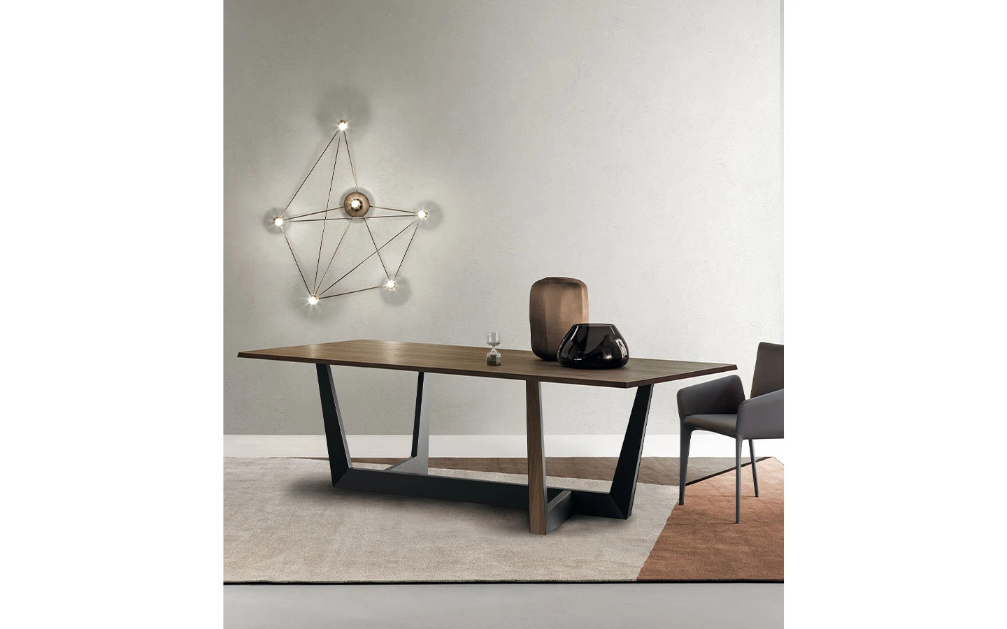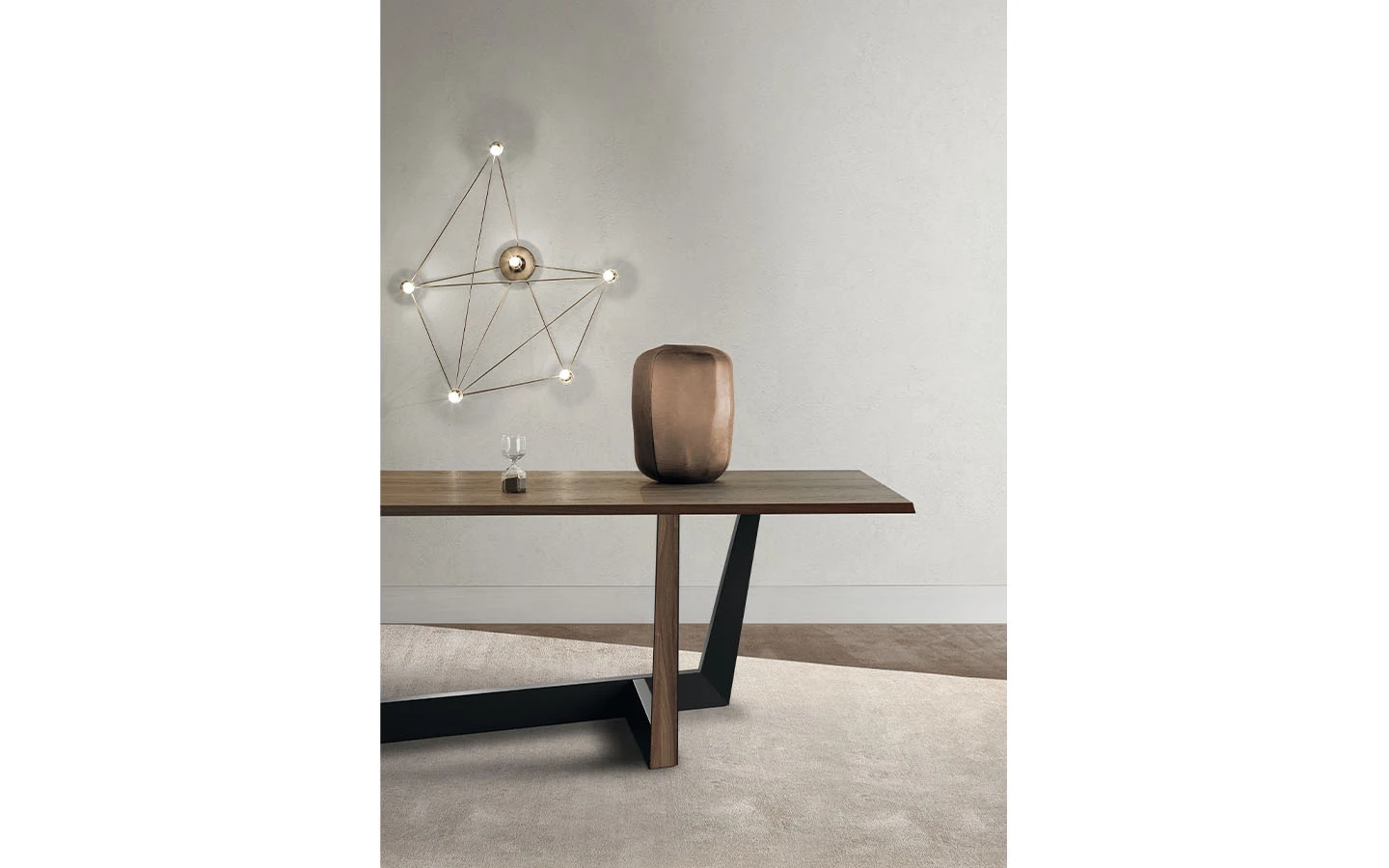Основата на масата ART е елементът, който я характеризира в най-голяма степен. Проектираната структура се отличава с висока динамика, солидност и скулптурно въздействие. Плотът на масата лежи здраво, но крайният ефект е много лек.
