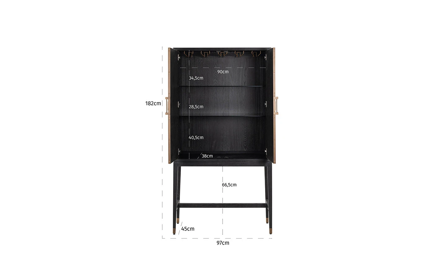 Бар шкафът BLOOMVILLE 2-DOORS от Richmond Interiors е изискано и функционално допълнение към всеки модерен интериор, съчетаващо луксозни материали и елегантен дизайн. Изработен от висококачествени материали като дъб, еко кожа, дъбов фурнир, метал и закалено стъкло, този шкаф предлага както стил, така и практичност. BLOOMVILLE 2-DOORS предлага стабилност и достатъчно пространство за съхранение. Вътрешността на шкафа е в черен цвят, а външният му вид е завършен с матово златни детайли, придаващи изтънченост и лукс. BLOOMVILLE 2-DOORS е идеален избор за тези, които търсят съчетание от елегантност и функционалност в едно мебелно решение.