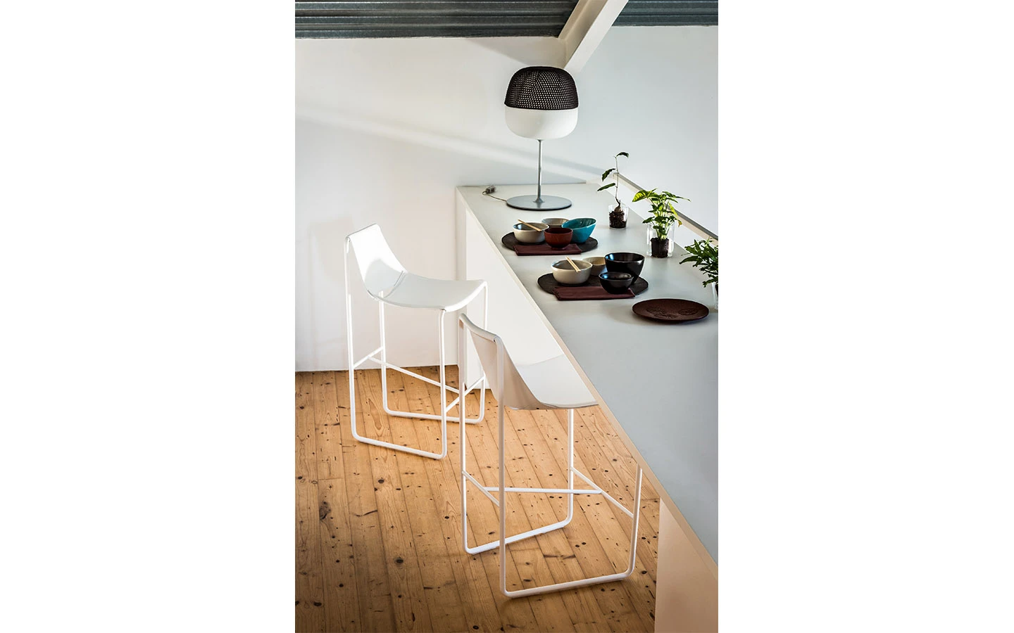 Бар столът APELLE M CU на MIDJ, проектиран от Beatriz Sempere, впечатлява със своята изискана и модерна елегантност. Създаден през 2013 година като част от по-голямата колекция Apelle, този модел съчетава метална конструкция с тапицирана седалка в естествен гьон – с възможност за богата персонализация. Металната рамка може да бъде с прахово боядисано или хромирано покритие, което придава визуална лекота и стабилност. APELLE се предлага във вариант с височина на седалката 65 см или 75 см. Изработен изцяло в Италия, този бар стол е отличен избор както за домашна обстановка, така и за стилни обществени пространства като ресторанти и кафенета. APELLE съчетава деликатен силует с изключителен комфорт, което го прави особено предпочитан за интериори с фокус върху качество и изтънченост.