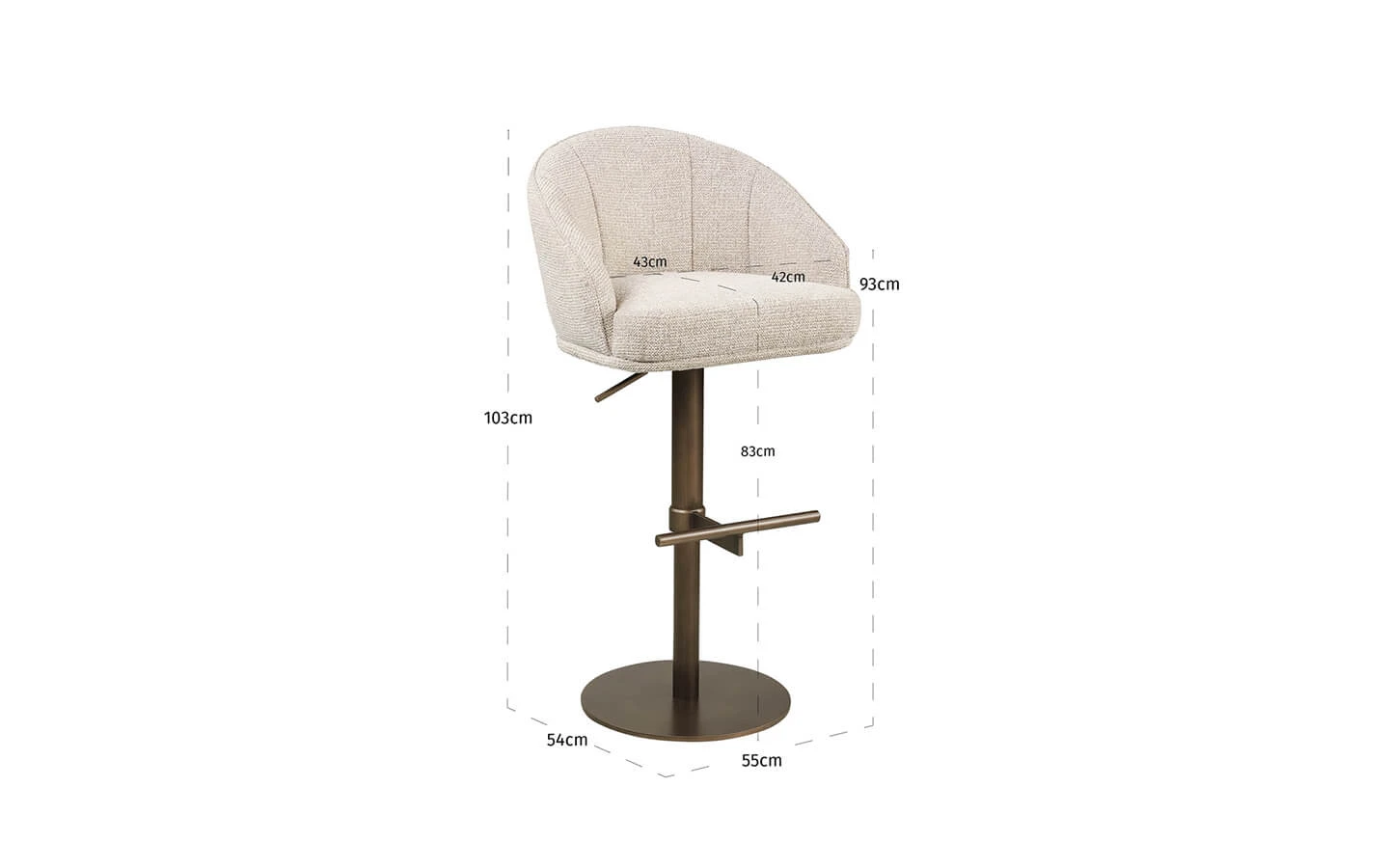 BEVERLY NATURAL FANCY е бар стол от колекцията на нидерландския производител Richmond Interiors. Бар столът e тапициран в дамаска – Natural Fancy. Основата въртяща се и е изработена от метал.