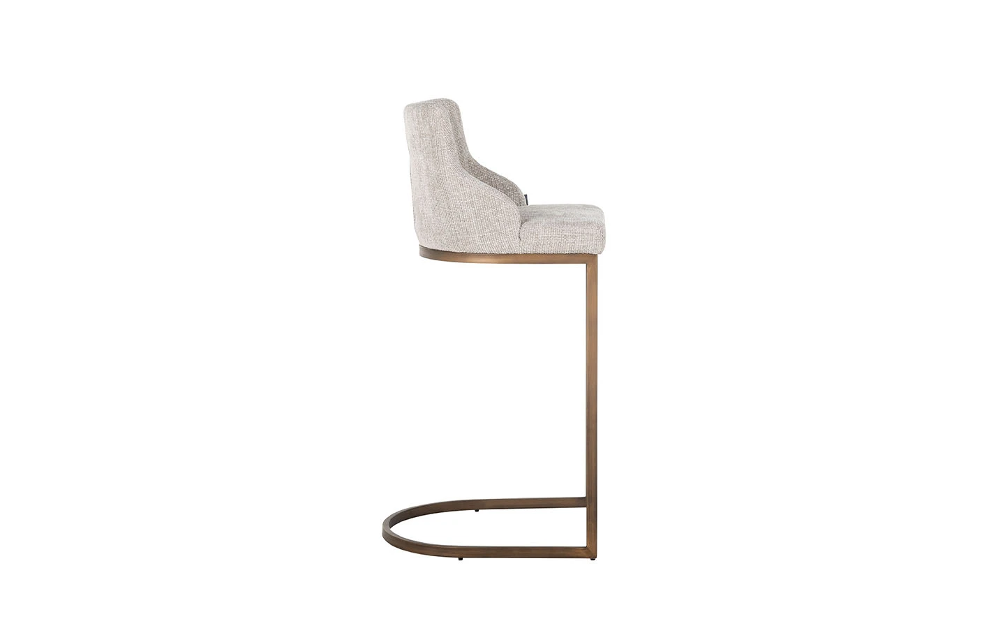 Сет от два бар стола BOLTON NATURAL RENEGADE от колекцията на Richmond Interiors. Този елегантен стол е тапициран с плат в цвят Renegade Natural 01, придаващ му естествен и изискан вид. Краката са изработени от неръждаема стомана с матирано златно покритие, което допълва луксозния му дизайн. Този бар стол е проектиран с внимание към детайла, осигурявайки комфорт и естетика, които го правят подходящ за различни интериорни решения.