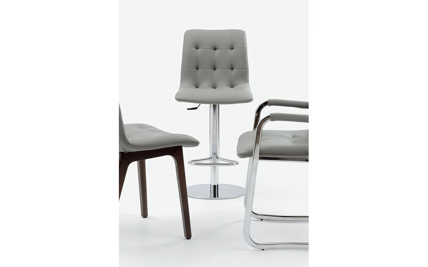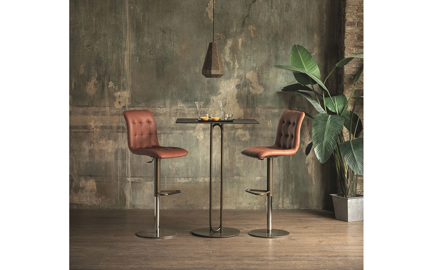 Въртящият се бар стол KUGA SWIVEL от Bontempi Casa съчетава модерен дизайн с изключителен комфорт. Той разполага с луксозно тапицирана и капитонирана седалка, налична в различни материали, с богата гама от цветове, подходящи за различни интериорни стилове. Оборудван с въртяща се основа с регулируема височина, която осигурява лесно завъртане и персонализиране на височината на седалката. Тази комбинация от елегантен дизайн и практични функции прави въртящия се бар стол KUGA универсален избор както за домашни, така и за обществени пространства.