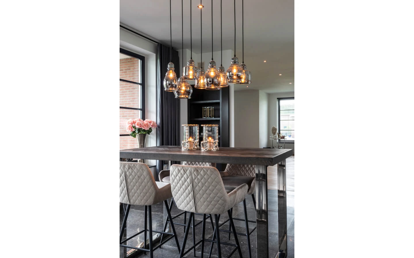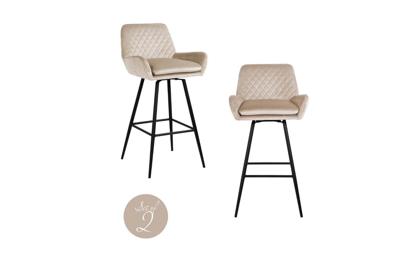 Сет от два бар стола LINSEY KHAKI VELVET от колекцията на нидерландския производител Richmond Interiors. Бар столът e тапициран в дамаска – Quartz Khaki. Основата е въртяща и е изработена от метал – финиш Black.