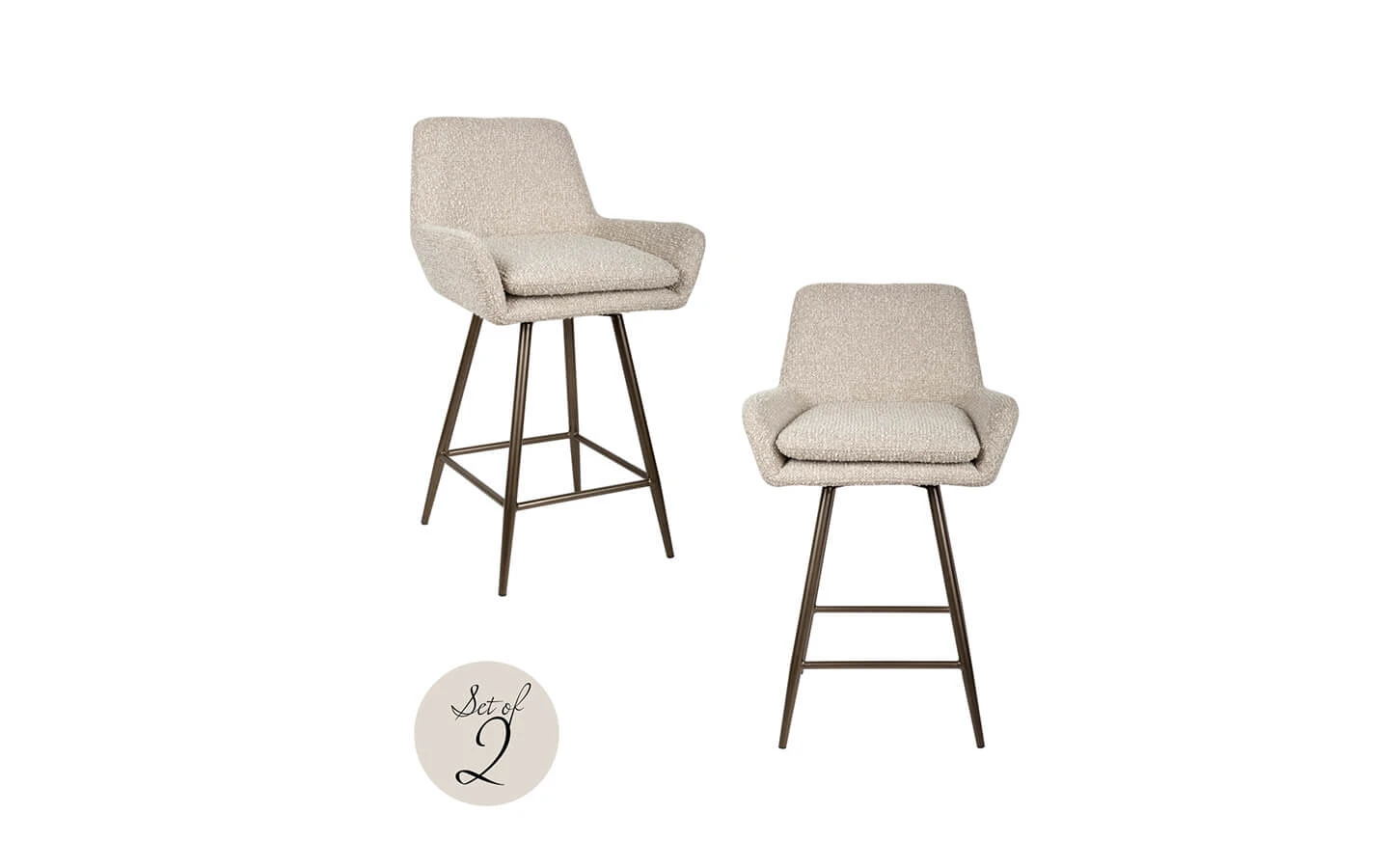 Сет от два бар стола LINSEY NATURAL CHUNKY от колекцията на нидерландския производител Richmond Interiors. Бар столът e тапициран в дамаска – Natural Chunky. Основата е изработена от метал.
