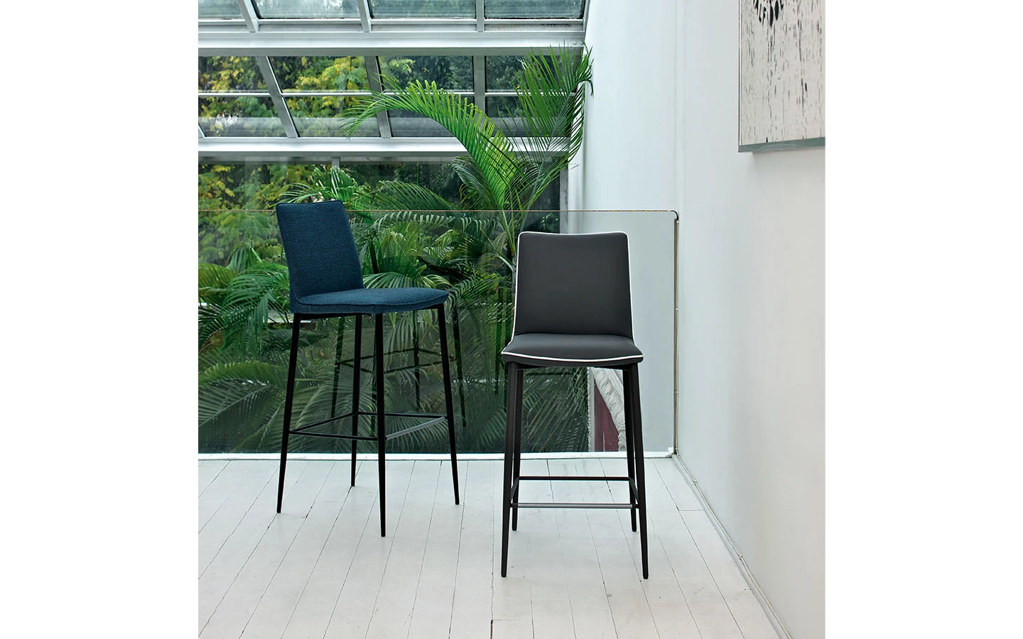 Бар столът NATA от Bontempi Casa е елегантно допълнение към вашия модерен бар или кухня. Благодарение на леко извитата облегалка и меката тапицерия, този стол предлага висок комфорт при консумация на напитки или храна след дълъг ден. Тънката, но здрава метална рамка е оборудвана с вградена поставка за крака по целия периметър, което добавя удобство. Ако изберете тапицерия от кожа или еко кожа, облегалката включва изискан капитонаж, който подчертава стила на стола. Бар столът NATA, произведен в Италия с невероятно внимание към детайлите, се предлага в две височини.