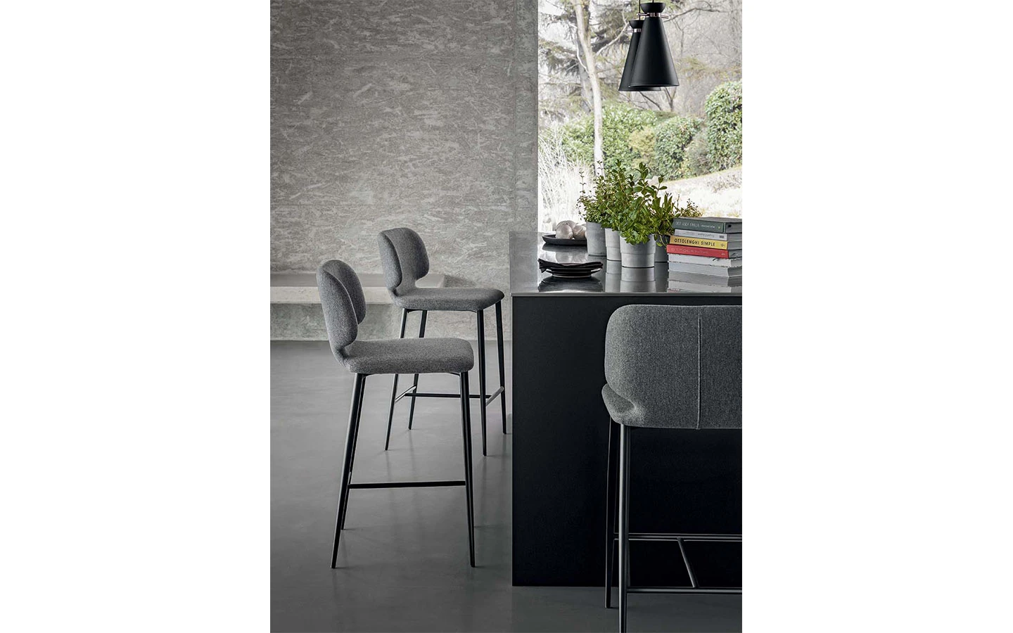Бар столът WRAP M TS на MIDJ, проектиран от Balutto Associati, впечатлява с хармоничния си силует и изтънчено присъствие. Седалката и облегалката са оформени в мека, обгръщаща форма, която осигурява изключителен комфорт и стабилност при седене. Тапицирани с висококачествена пяна, те могат да бъдат облечени в текстил, еко кожа или естествена кожа, като моделът предлага възможност за двуцветна тапицерия или различни материали за предна и задна част. Металната основа е изчистена и издръжлива, с прахово боядисано покритие, налично в разнообразие от цветове, което позволява лесно съчетаване с различни интериорни стилове. WRAP M TS се предлага с височина на седалката 65 см или 75 см. Изцяло произведен в Италия, бар столът WRAP M TS е отлично решение за интериори, които залагат на елегантен минимализъм, уют и безупречно качество.