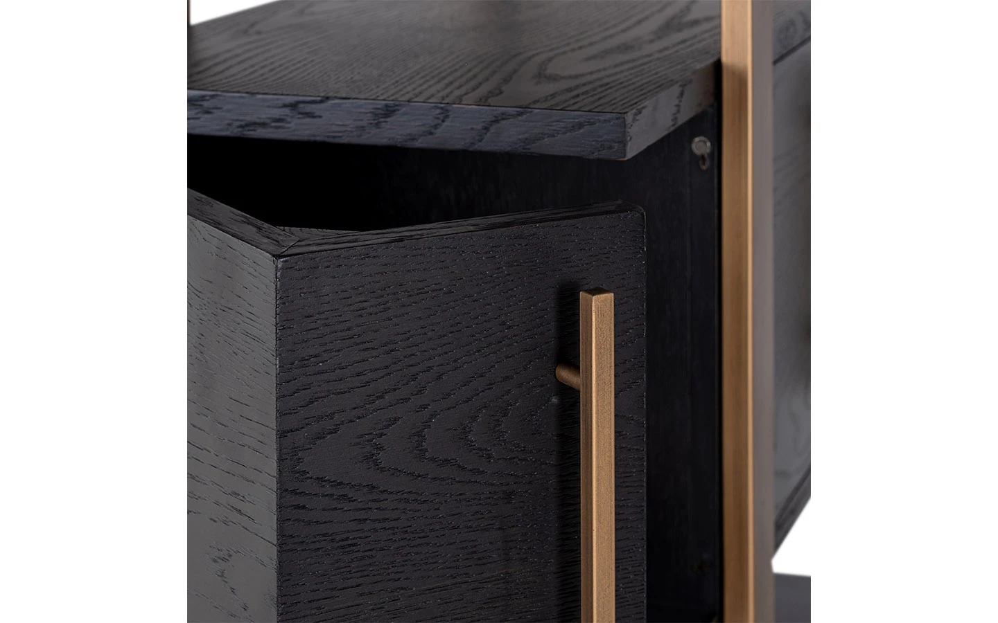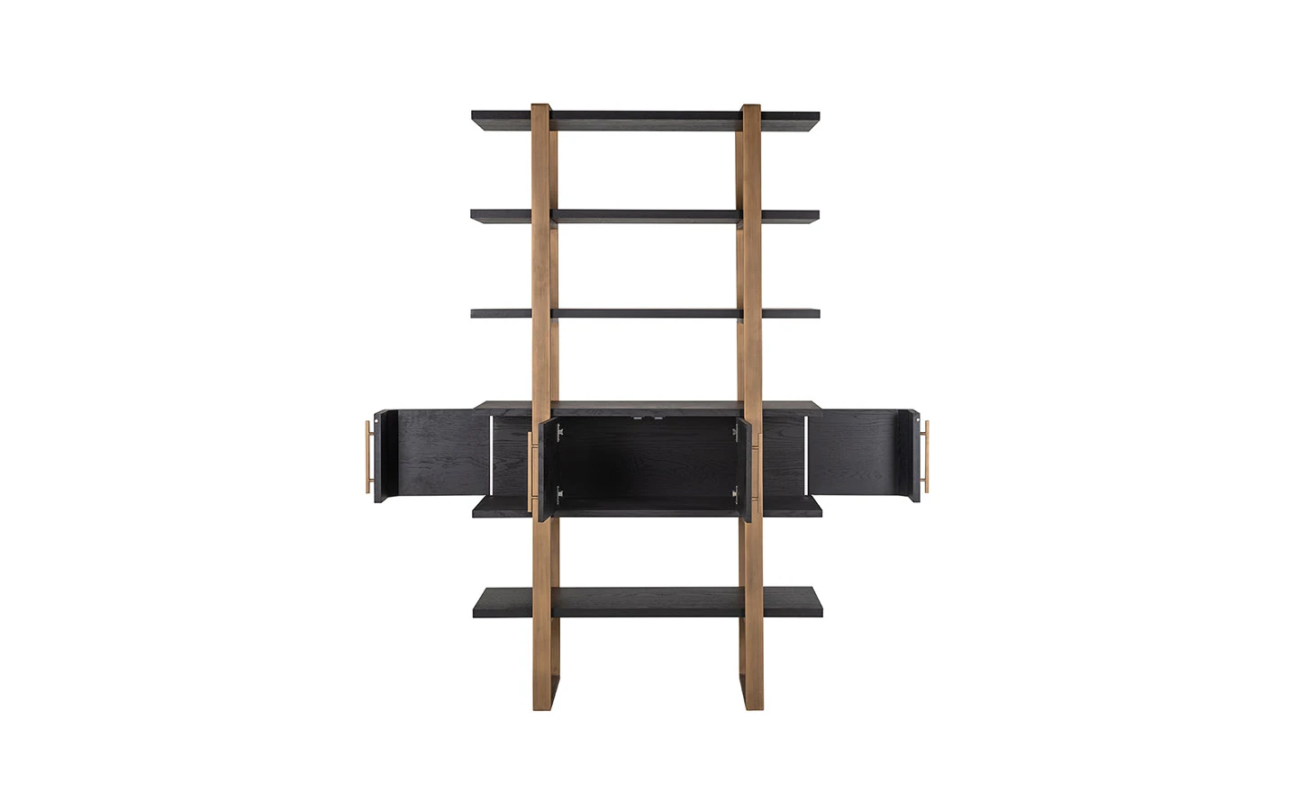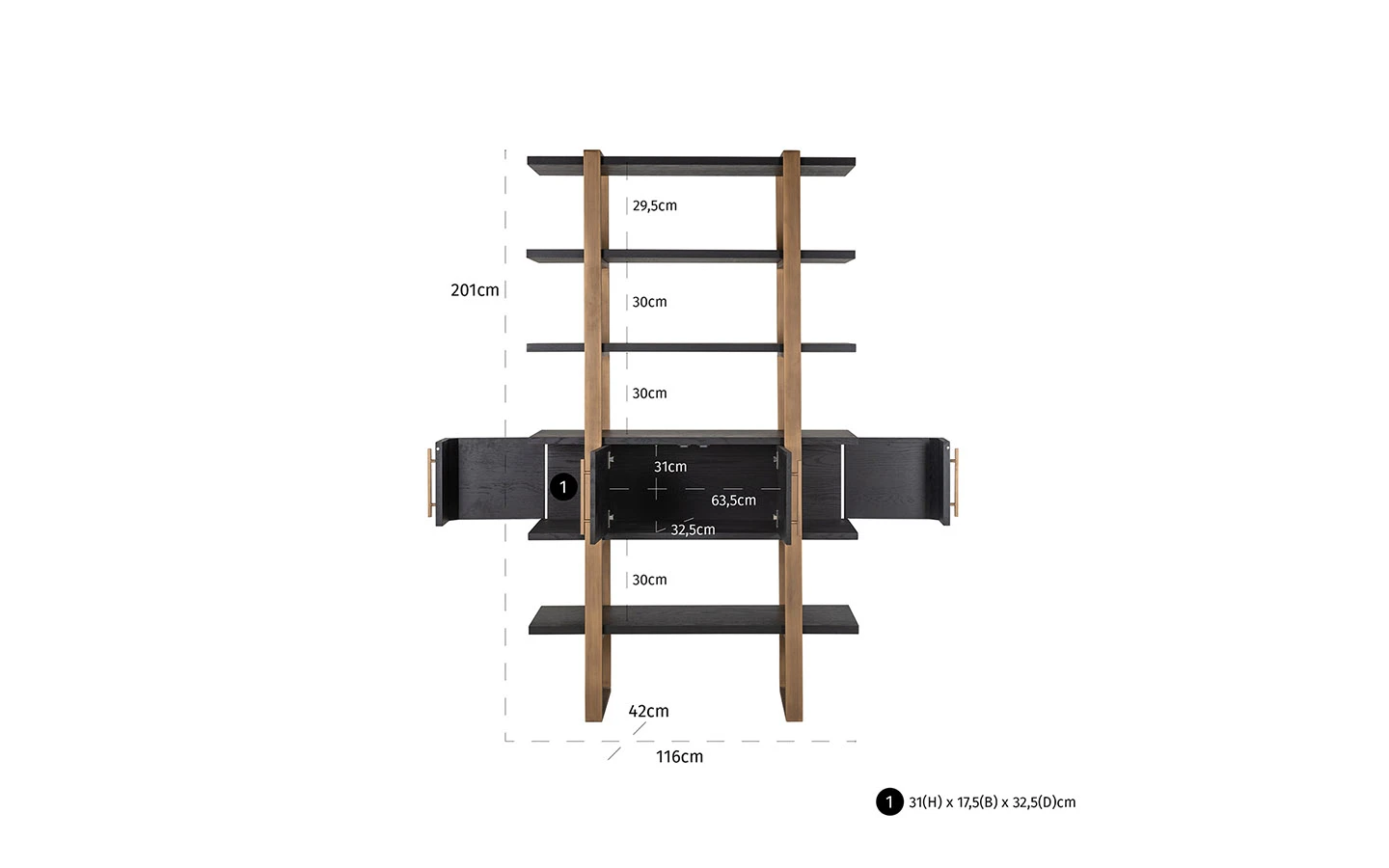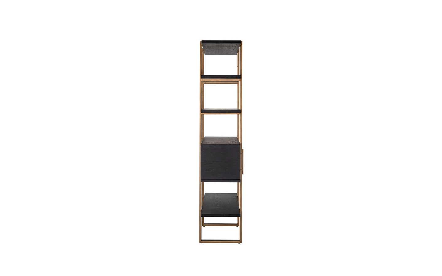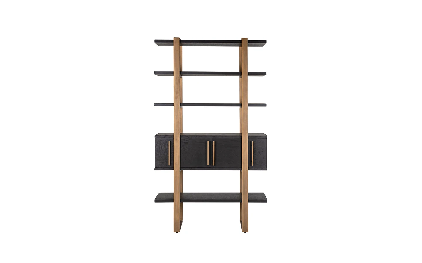 Библиотеката CAMBON 4 DOORS 4 SHELVES от Richmond Interiors е впечатляващо съчетание на индустриален стил и елегантен дизайн, което я прави изключително подходяща за модерни интериори. Изработена от черен дъбов фурнир и допълнена с месингова структура, тя придава усещане за лукс и изтънченост на всяко пространство. С размери 200 см височина, 116 см ширина и 42 см дълбочина, тази библиотека предлага отворени рафтове в горната част, идеални за излагане на книги, декоративни предмети или лични колекции. Долната част разполага с четири врати, зад които се крие допълнително пространство за съхранение, осигурявайки практичност и естетика в едно. Тази библиотека е идеален избор за тези, които търсят съчетание от стил, функционалност и качество в интериора си.