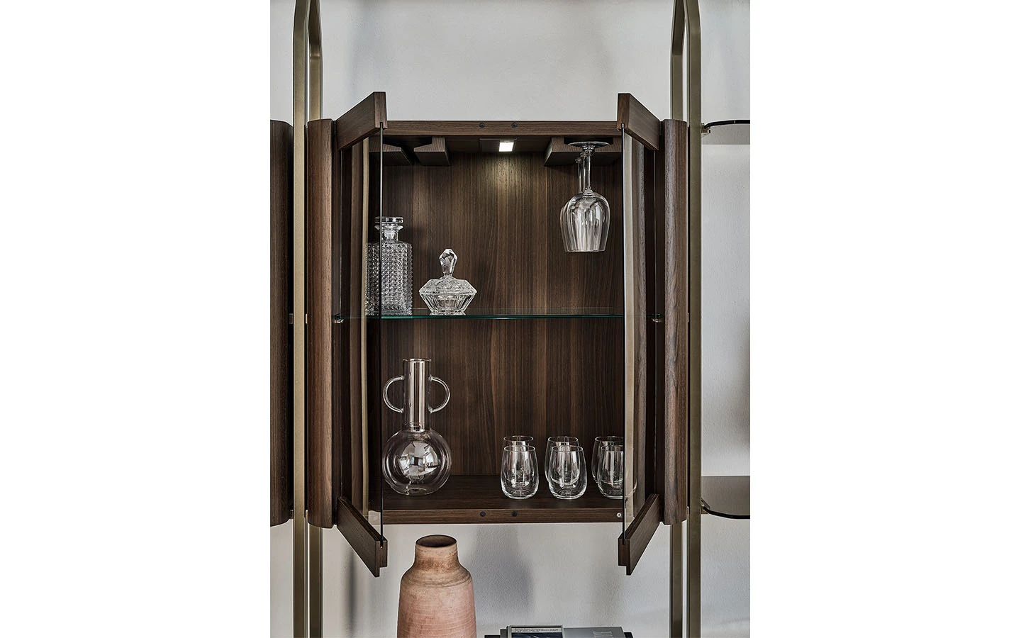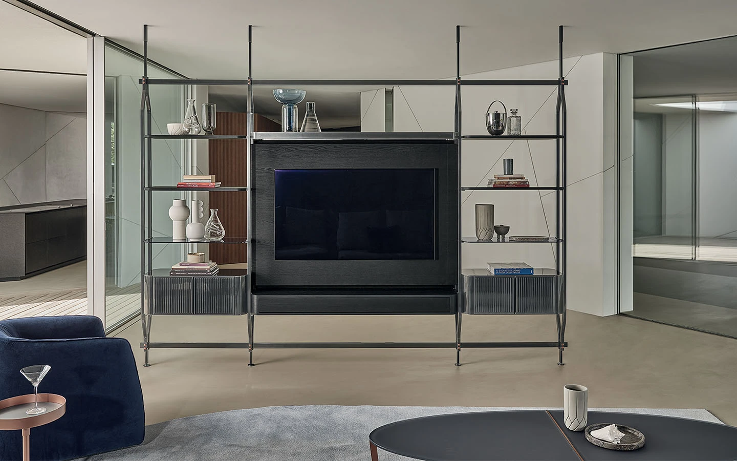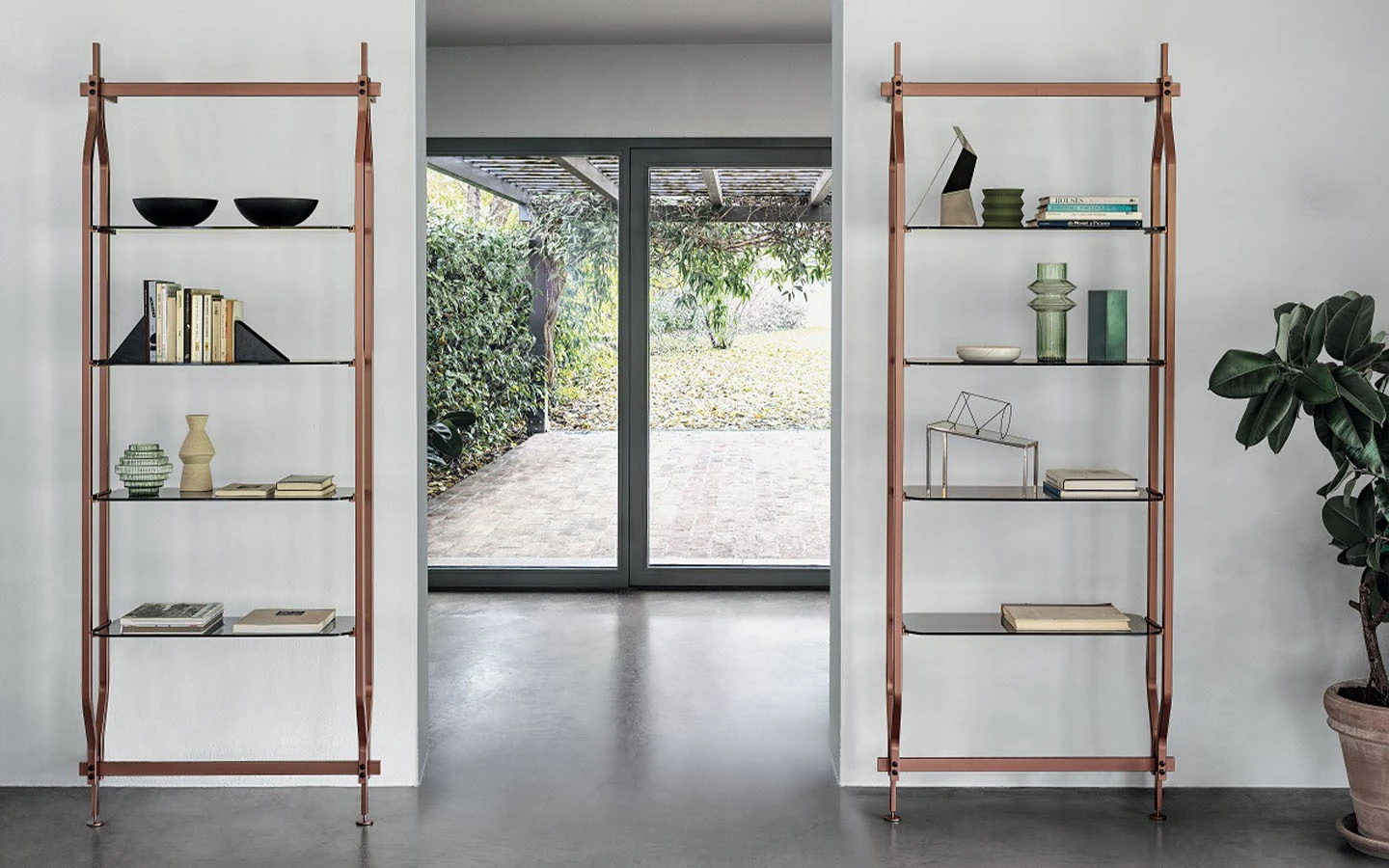Библиотеката CHARLOTTE от Bontempi Casa е модерно и гъвкаво решение за съхранение, проектирано от Shannon Sadler. Нейният модулен дизайн позволява както монтаж на стена, така и закрепване между пода и тавана, което я прави изключително адаптивна към различни интериорни пространства. CHARLOTTE може да бъде конфигурирана с 4, 8, 12, 16 или 20 рафта, като се предлагат и допълнителни модули за съхранение, което осигурява гъвкавост в зависимост от нуждите. Библиотеката може да се използва както като класическа библиотека, така и като елегантен разделител на пространството. Тази библиотека предлага идеален баланс между функционалност и естетика, като позволява интелигентно използване на пространството. Съчетавайки модулност, богато разнообразие от покрития и гъвкави възможности за монтаж, CHARLOTTE е стилно и практично допълнение към модерния интериор.
