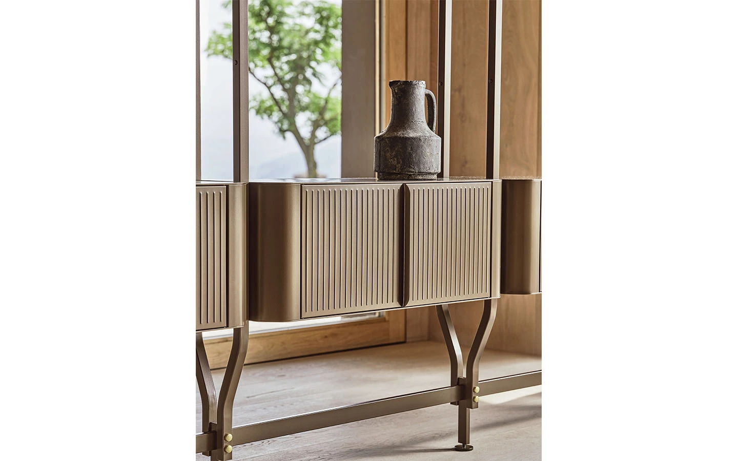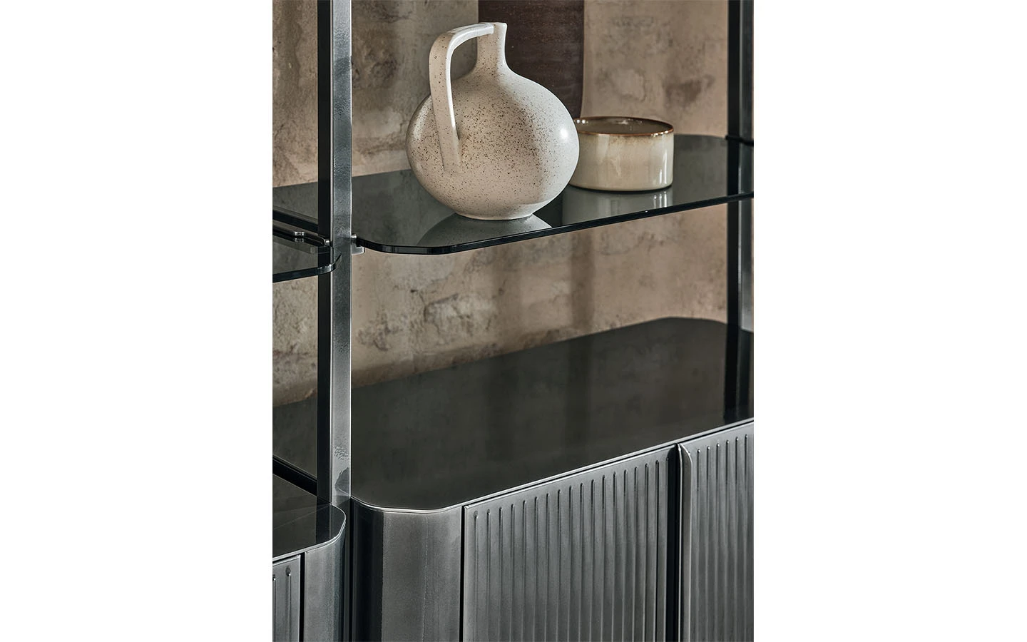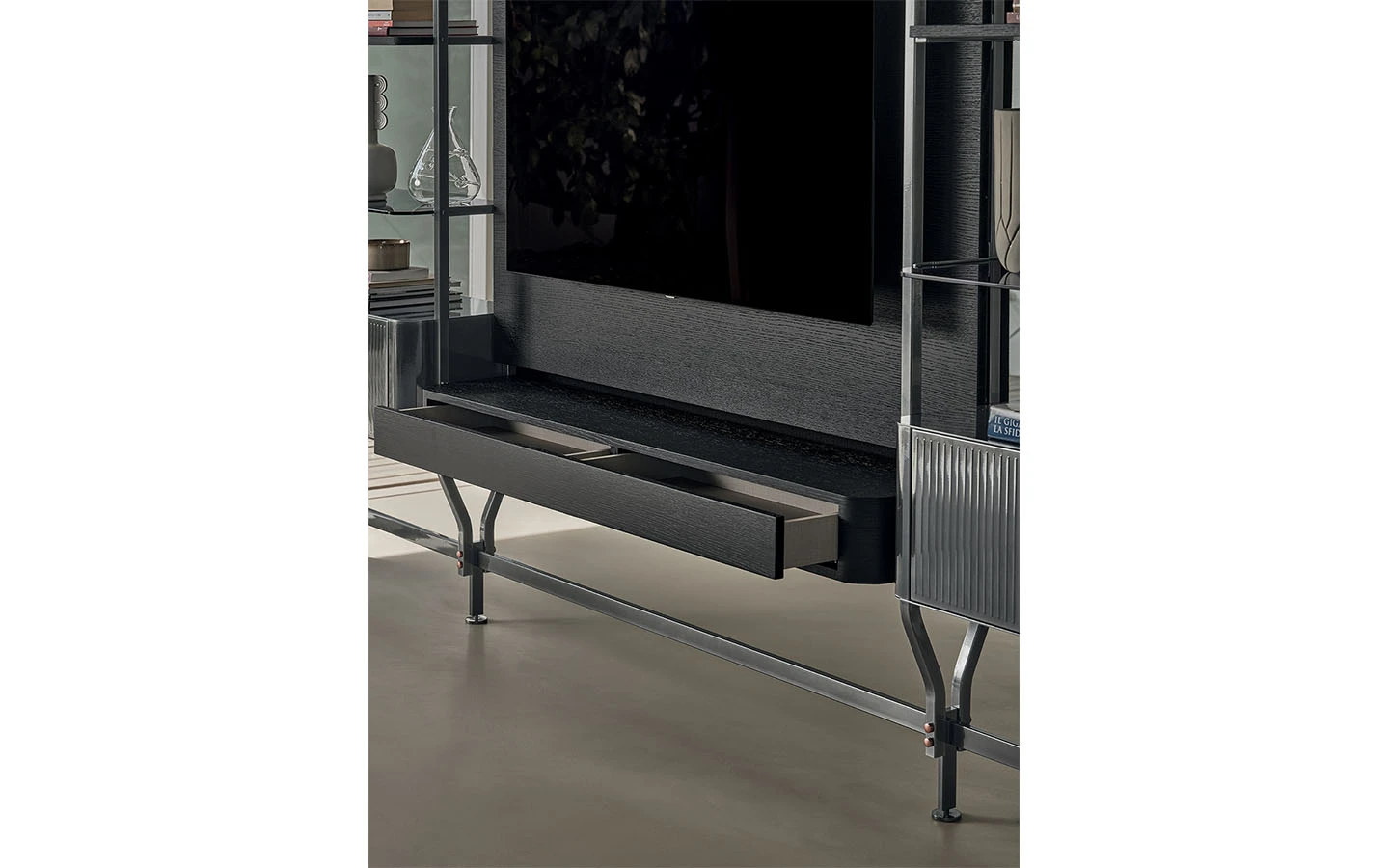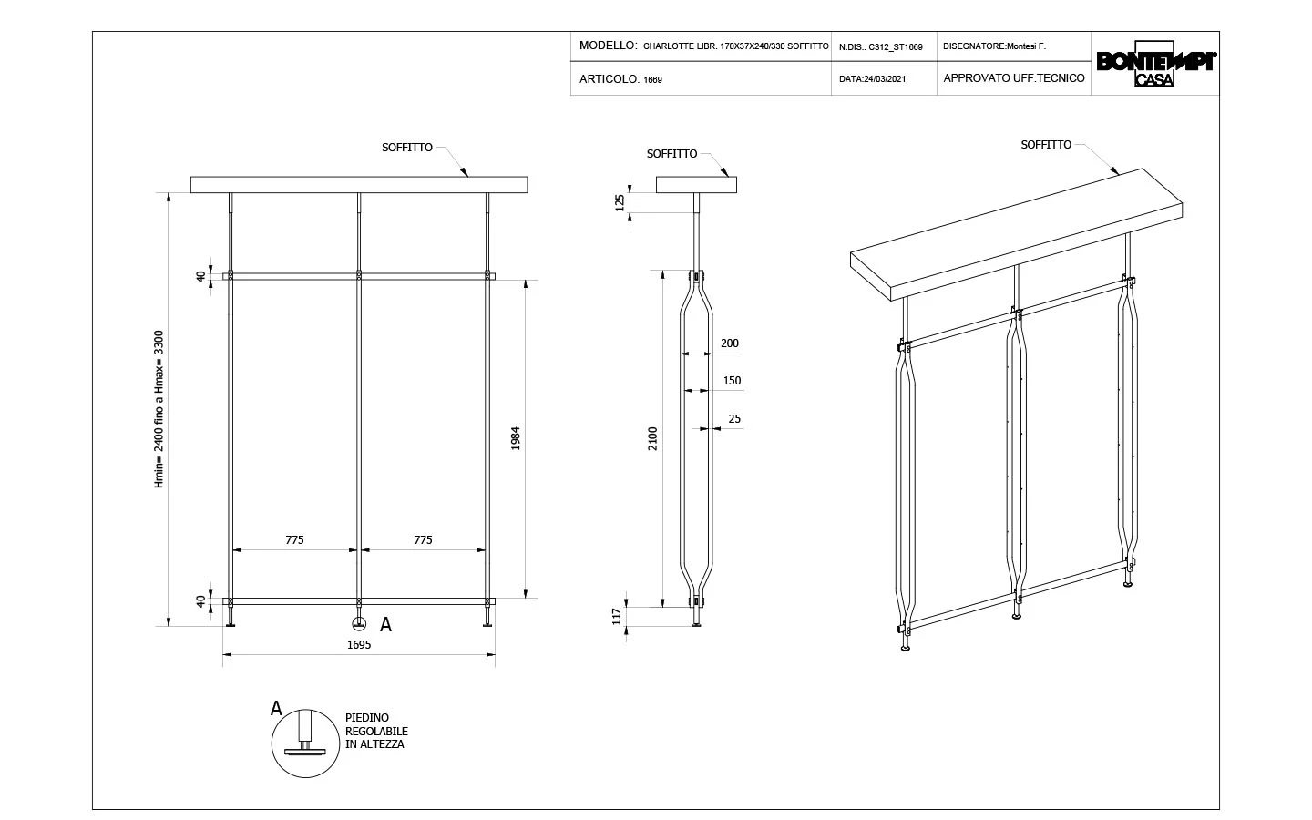 CHARLOTTE е италианска модулна библиотека от колекцията на италианския производител Bontempi. Структурата е изработена от метал – финиш по избор. Библиотеката може да бъде фиксирана към стена или монтирана между пода и тавана. По избор може да се добавят чекмеджета, рафтове, шкафове, витрини и ТВ панели към конструкцията на библиотеката. Цената на библиотеката се формира на база избора на конфигурацията на композицията.