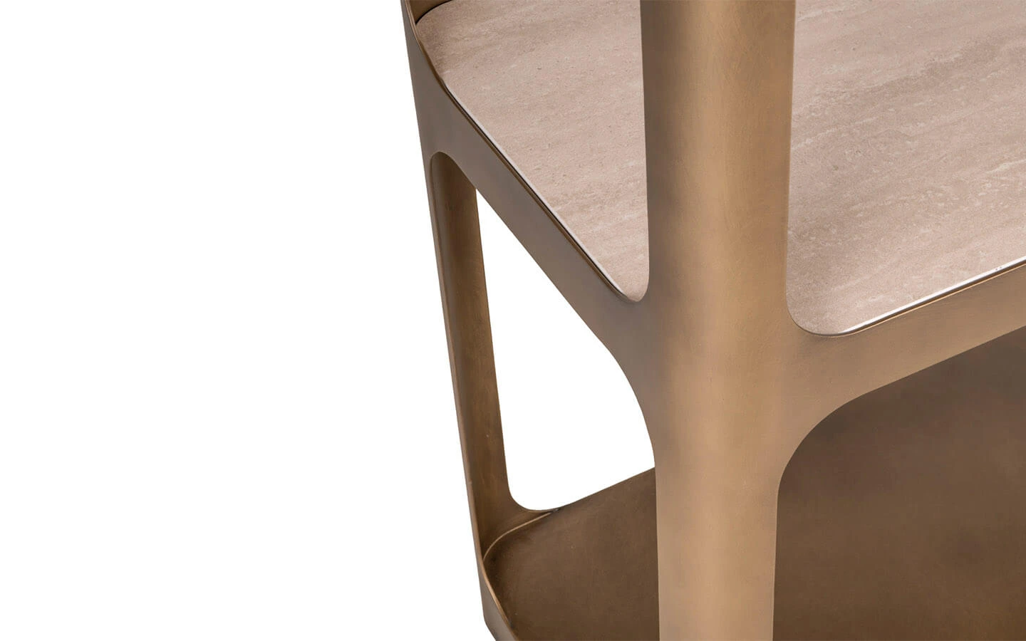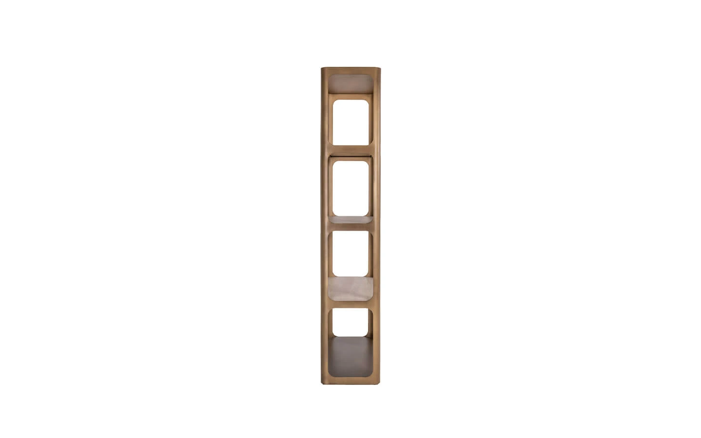 CLARIDGE SAND е изтънчена библиотека от RICHMOND INTERIORS, който впечатлява с лек и елегантен силует. Конструкцията му комбинира фина метална рамка и рафтове с визия, наподобяваща светъл камък или травертин, което придава усещане за спокойствие и естествен лукс. Отвореният дизайн без врати позволява свободно подреждане и експониране на декоративни предмети, книги или аксесоари, превръщайки шкафа в стилен акцент, който не утежнява пространството. Благодарение на семплата си форма и меката цветова гама, CLARIDGE SAND се вписва както в модерни и минималистични интериори, така и в по-класически среди, където се търси лек контрапункт на масивните мебели. Подходящ е за дневна, трапезария или коридор, където добавя вертикална структура и подреденост без да доминира визуално. Шкафът впечатлява с дискретен чар — стилен, но ненатрапчив, с деликатен баланс между функционалност и естетика.
