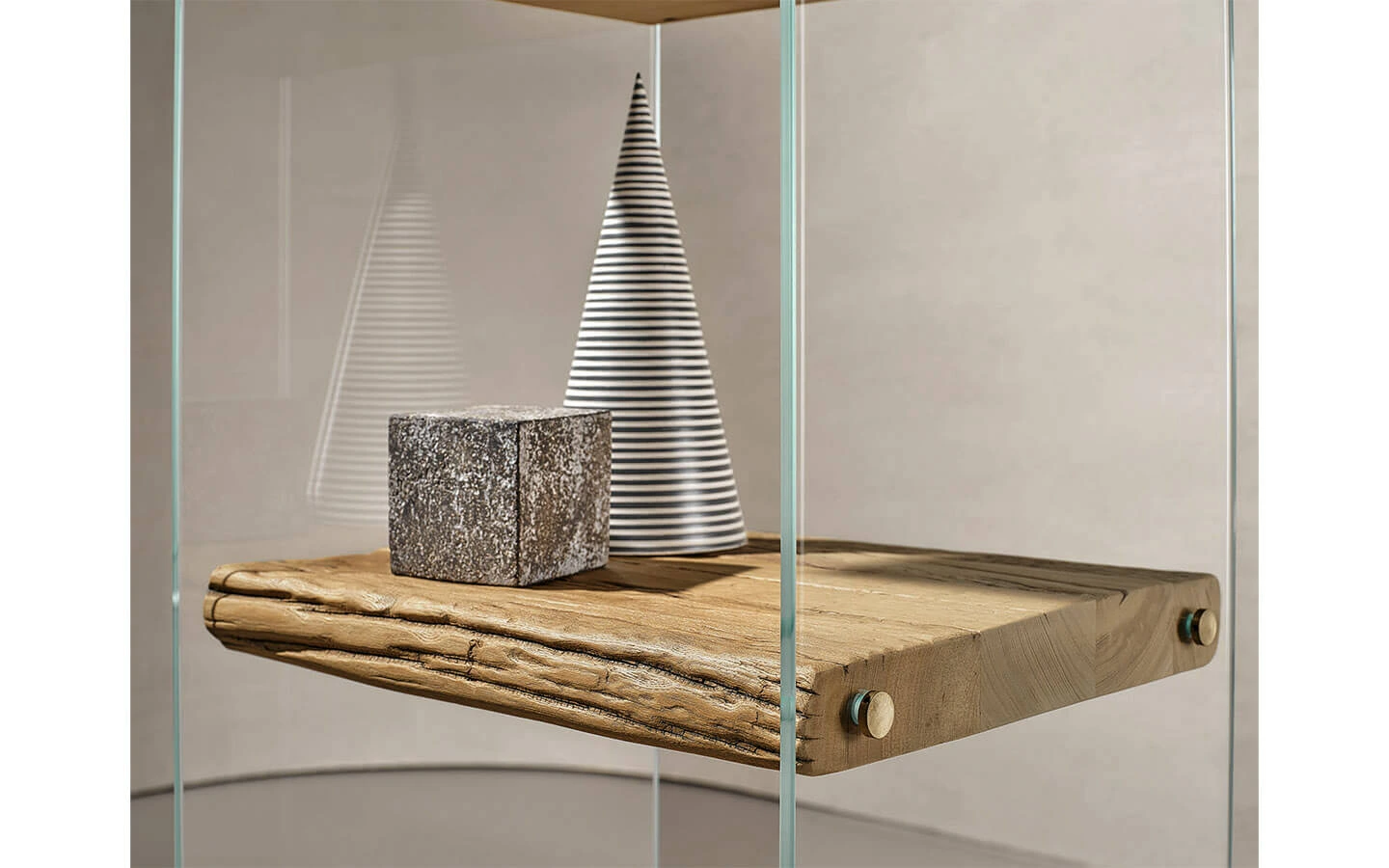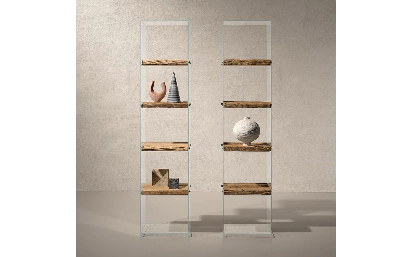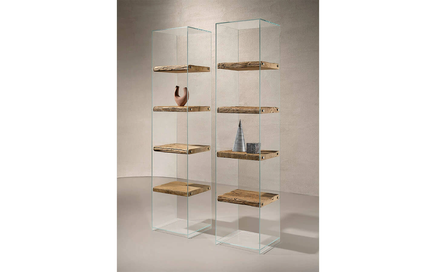 FROST е библиотека от колекцията на италианския производител NATURE DESIGN. Структурата е изработена от прозрачно стъкло. Рафтовете могат да бъдат изработени от масивен ясен или масивна вековна дървесина – материал и финиш по избор. Цената се определя спрямо избора на материал на рафтовете.