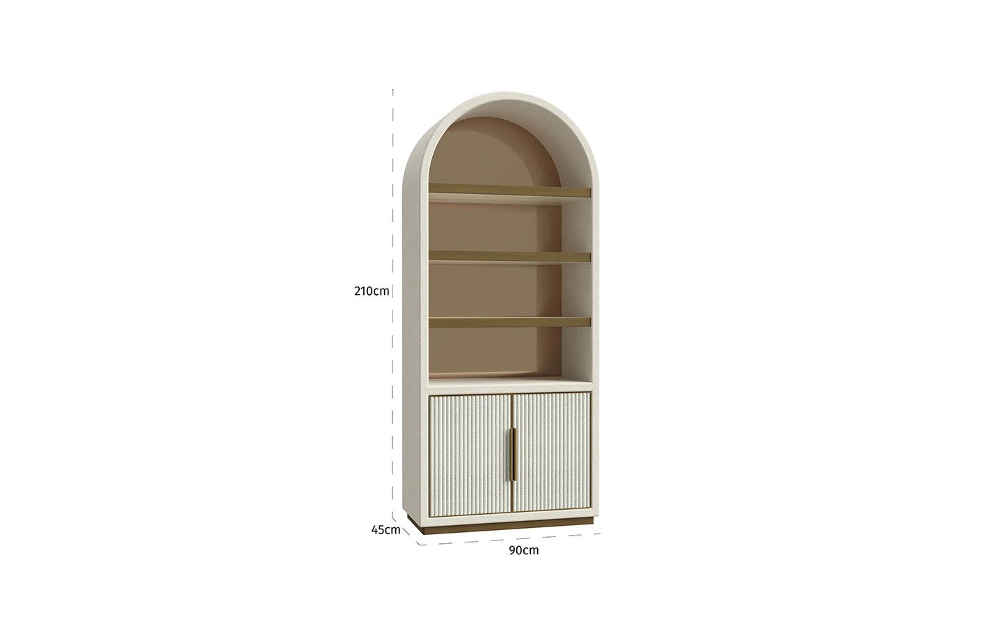 Библиотеката TIVOLI WHITE от Richmond Interiors е елегантна и функционална мебел, която придава архитектурен чар и изтънченост на всяко пространство. Със своята изчистена бяла визия и арковидна форма, тя се вписва идеално както в класически, така и в съвременни интериори. Изработена от висококачествени материали като MDF, метал и дъбов фурнир, тази библиотека предлага три отворени рафта в горната част, подходящи за излагане на книги, декоративни предмети или лични колекции. Долната част разполага с две врати, зад които се крие допълнително пространство за съхранение, осигурявайки практичност и естетика в едно. С размери 210 см височина, 90 см ширина и 45 см дълбочина, библиотеката гарантира стабилност и дълготрайност. Нейният изискан дизайн и функционалност я правят отличен избор за тези, които търсят съчетание от стил, качество и практичност в интериора си.