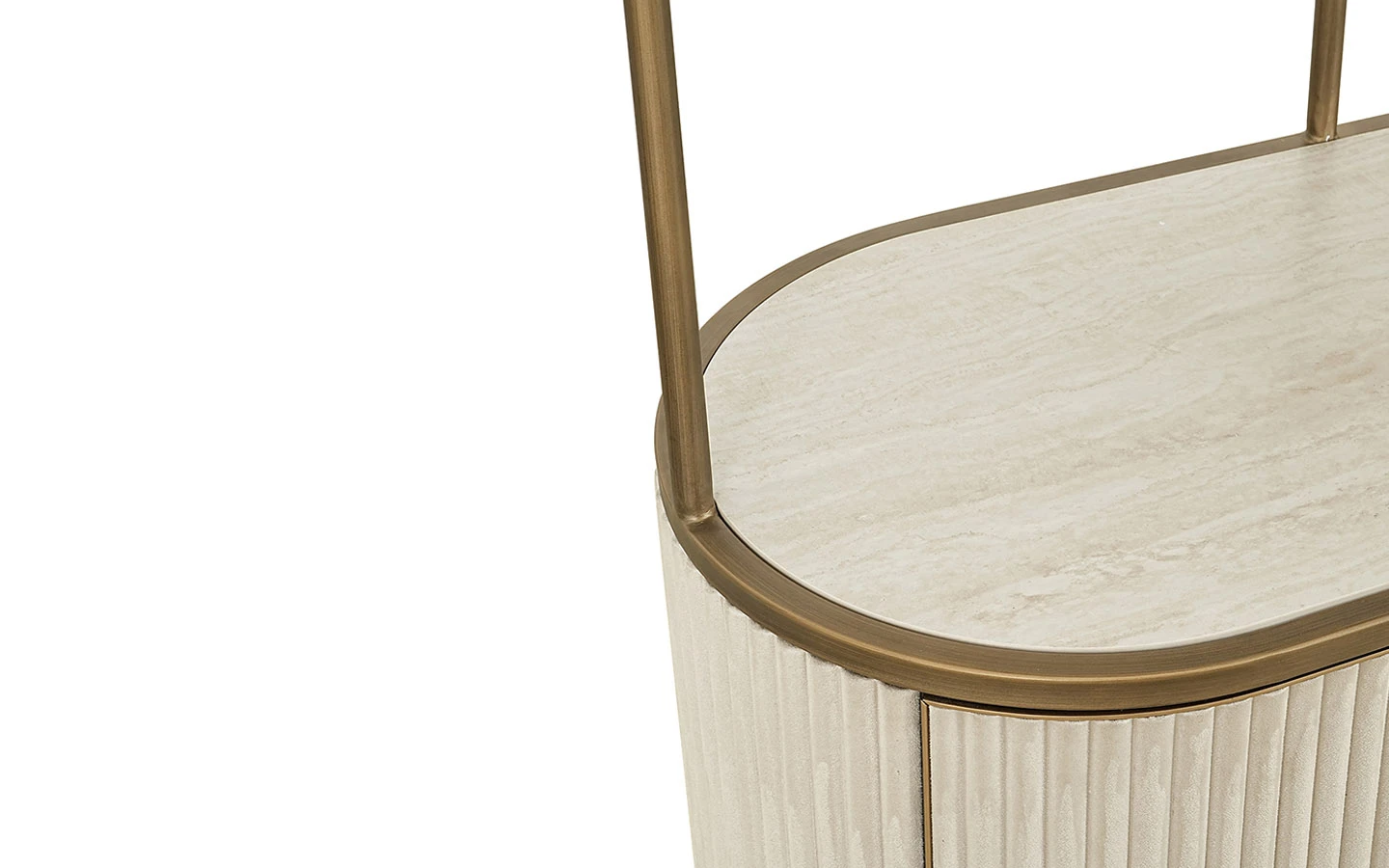 TIVOLI е библиотека от колекцията на нидерландския производител Richmond Interiors. Библиотеката е изработена от MDF, метал и керамика – финиш White. Вратите и основната структура са тапицирани в плат в оребрен дизайн.