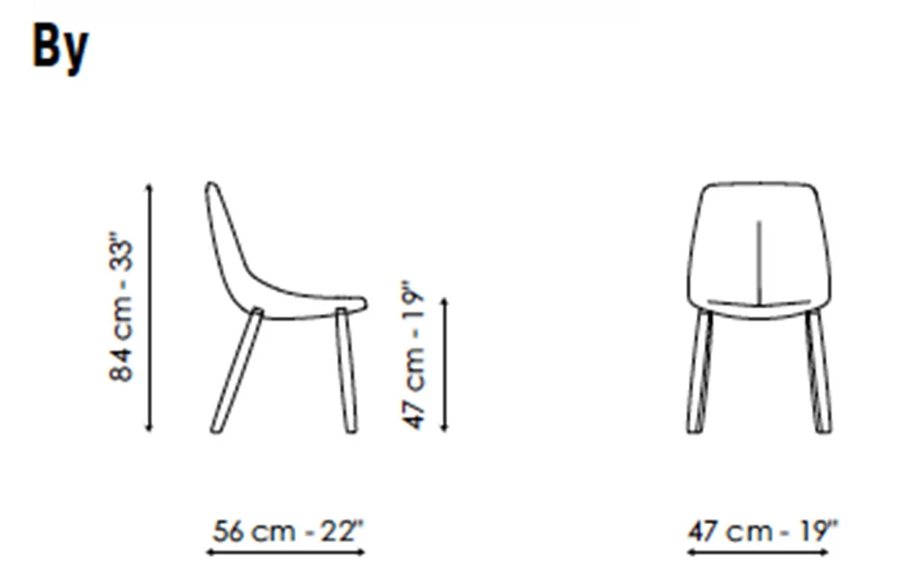 BY е италиански трапезарен стол от колекцията на италианския производител Bonaldo. Италианският трапезарен стол BY може да бъде тапициран в дамаска, еко кожа или кожа – материал и цвят по избор на клиента. Краката на стола са от масивен ясен – финиш по избор на клиента. Предлага се и във версия BY MET с метални крака.