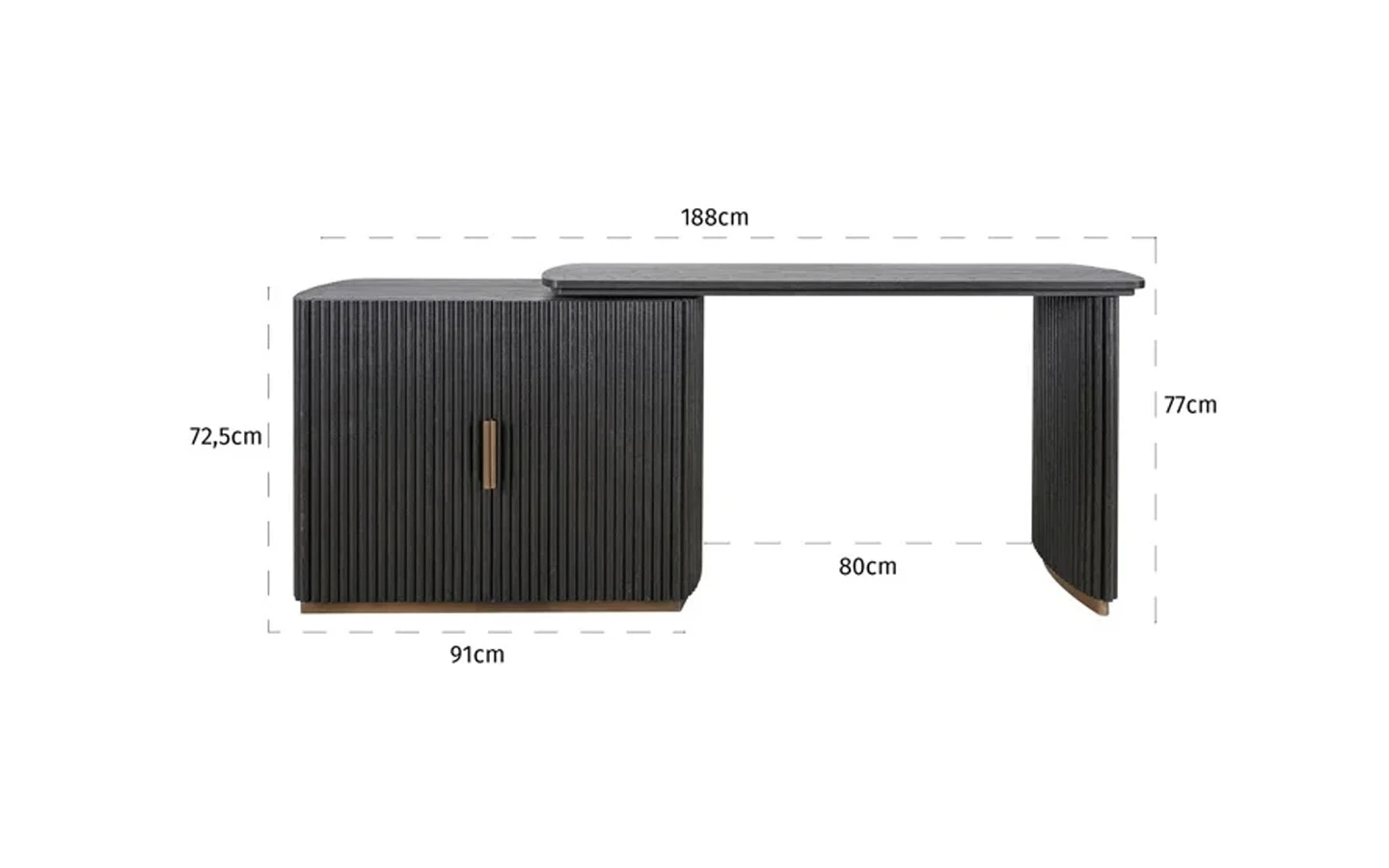 CAMBON е бюро от колекцията на нидерландския производител Richmond Interiors. Основата и дръжките на вратите са изработени от метал. Бюрото е изработено от фурнировано дърво – финиш Dark coffee. Плотът е с въртящ се механизъм.