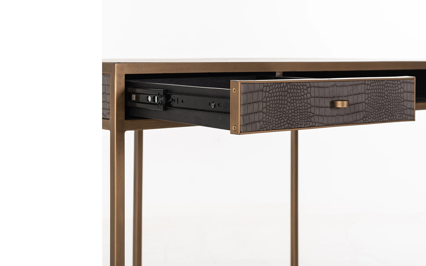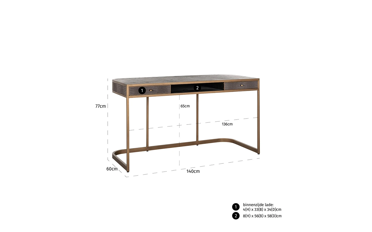 CLASSIO е бюро от колекцията на нидерландския производител Richmond Interiors. Структурата е изработена от метал – финиш Brushed Gold. Бюрото е изработено от комбинацията между фурнировано дърво и еко кожа.