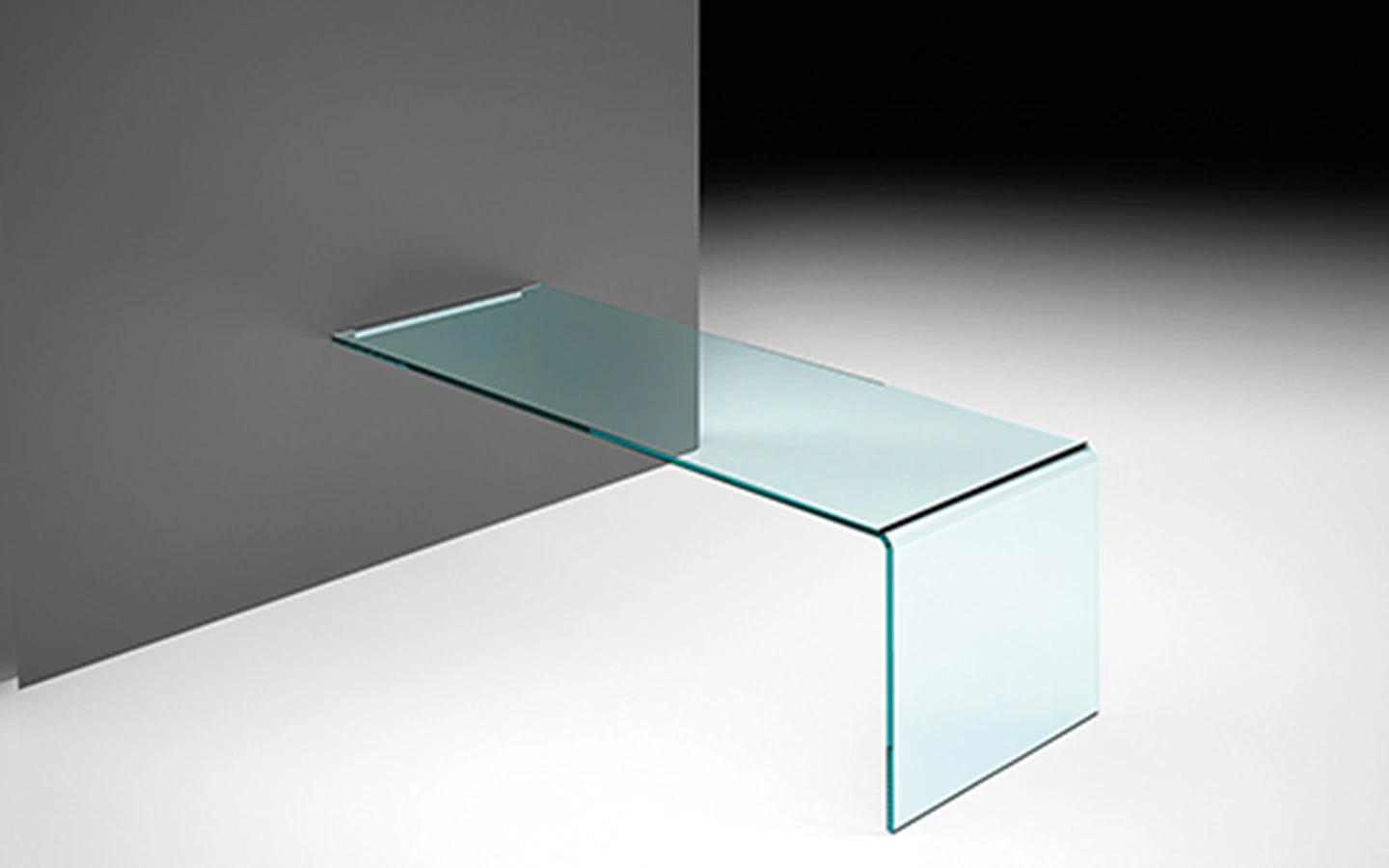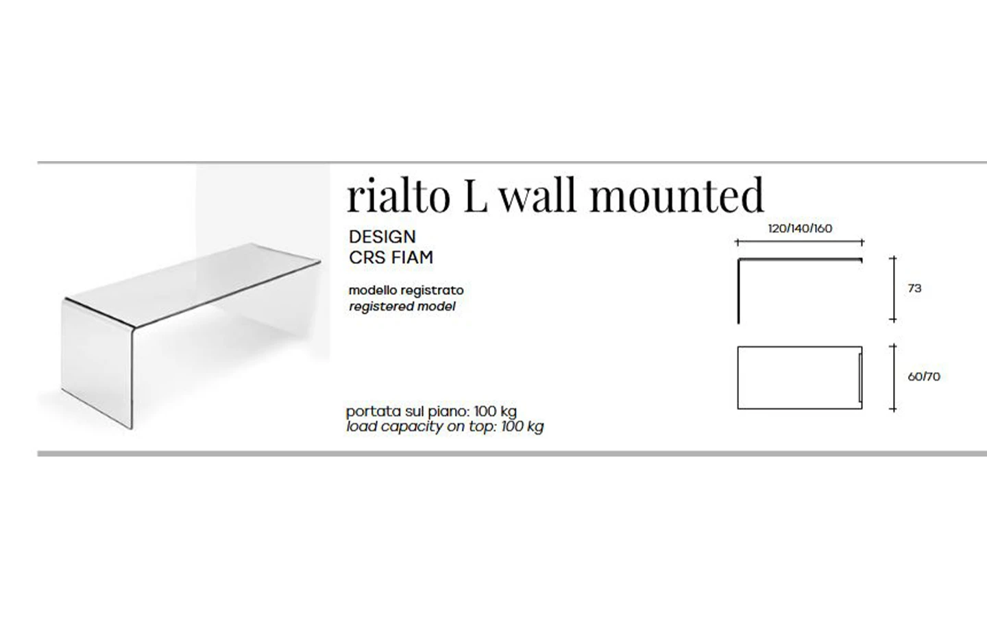 фис бюрото RIALTO L WALL-MOUNTED, проектирано от CRS FIAM за FIAM Italia, е елегантно и минималистично стенен монтаж бюро, изработено от извито прозрачно стъкло с дебелина 15 мм. То разполага с алуминиев елемент с полирано покритие за сигурен монтаж на стената, осигурявайки стабилност и модерен външен вид.
