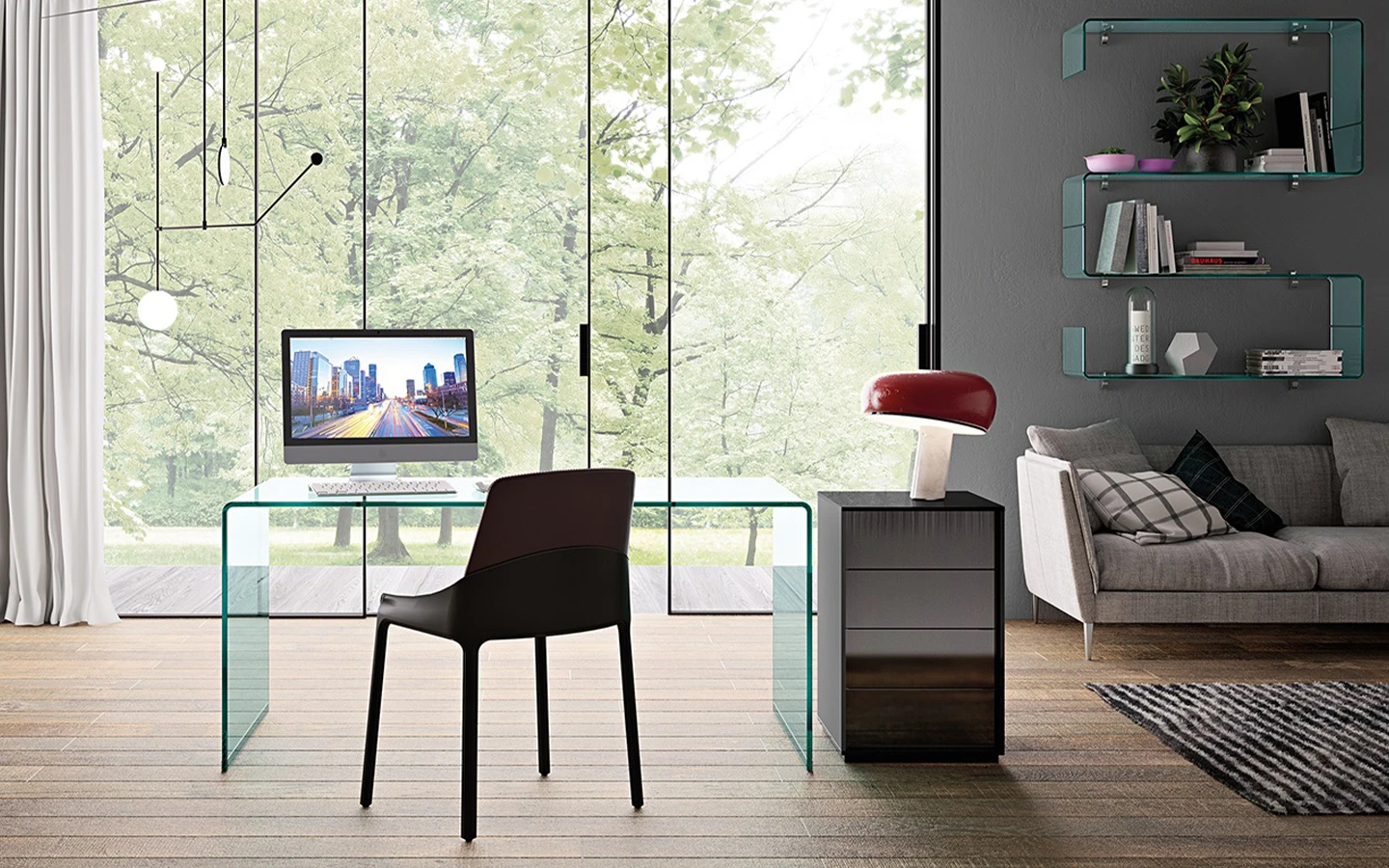 Офис бюрото RIALTO, проектирано от CRS FIAM за FIAM Italia, е минималистично и елегантно изделие, което демонстрира експертността на марката в работата със стъкло.