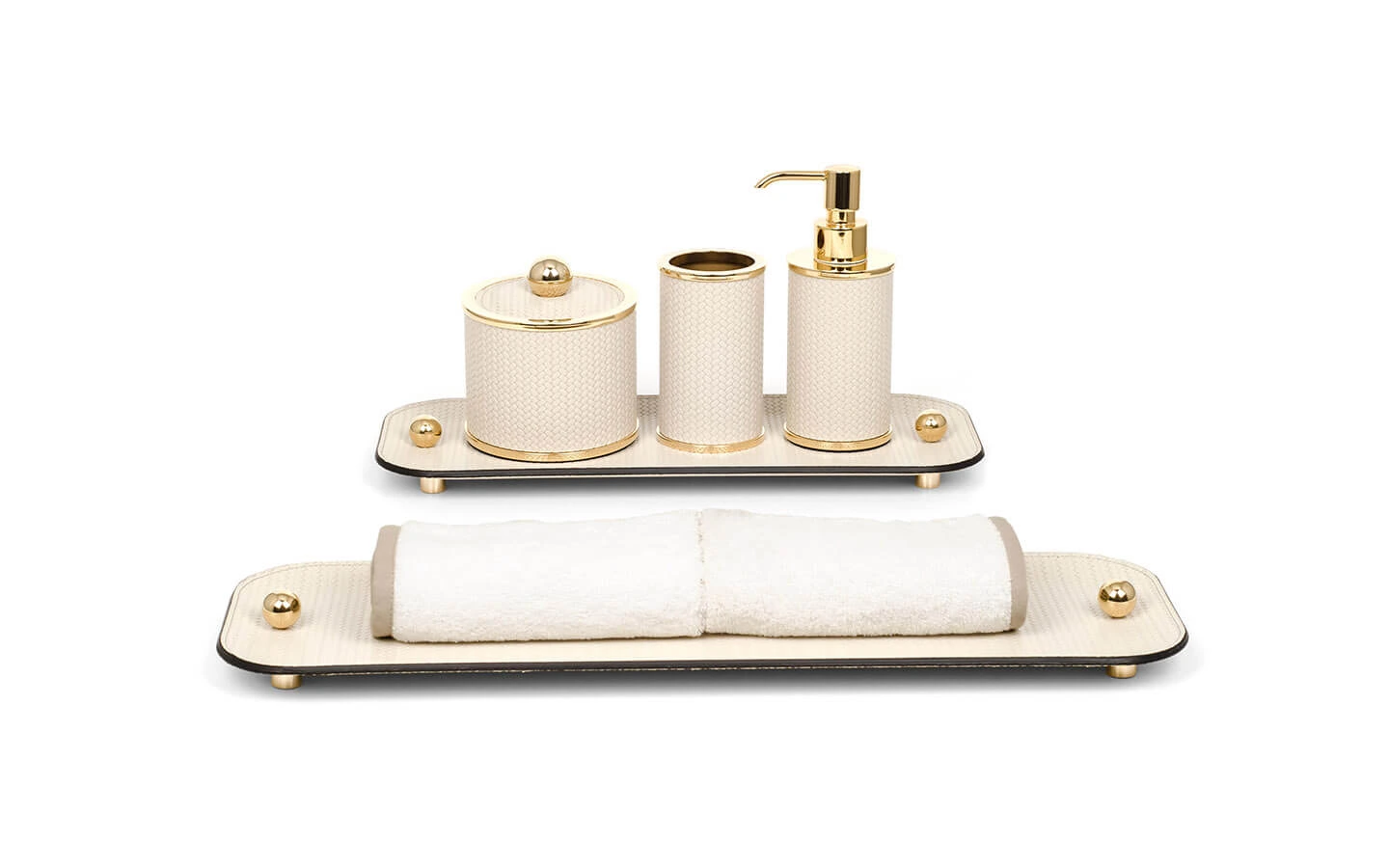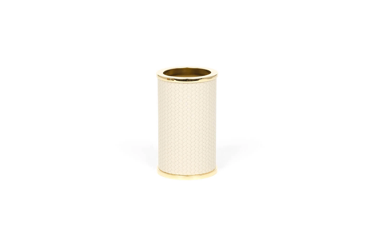OLIMPIA ROUND GOLD е чаша за четки за зъби от колекцията на италианския производител PINETTI. Чашата е с цилиндрична форма и е изработенa от естествена кожа – цвят по избор. Структурата е изработена от метал – финиш Gold. Цената се определя спрямо избора на цвят кожа.