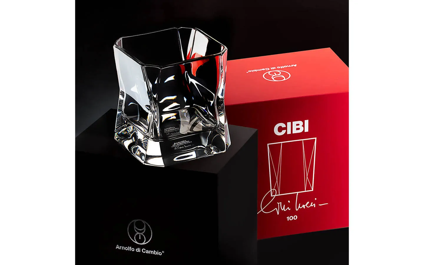 CIBI DOUBLE OLD FASHION от ARNOLFO DI CAMBIO е емблематична чаша за уиски, изработена в Италия от ръчно духано кристално стъкло по дизайн на известната италианска дизайнерка Cini Boeri. Тя се отличава с характерен геометричен силует с изрязани ръбове и леко стесняваща се форма, която не само придава артистичен и архитектурен характер, но и осигурява удобен захват и отлично усещане в ръката. Масивното дъно и кристалът дават стабилност и баланс, а оптималната вместимост я прави подходяща за сервиране на уиски, коктейли или напитки с лед. Тази чаша съчетава функционалност с авангардна естетика и високо италианско майсторство, превръщайки се в стилен и изискан елемент за всяка маса или бар пространство.