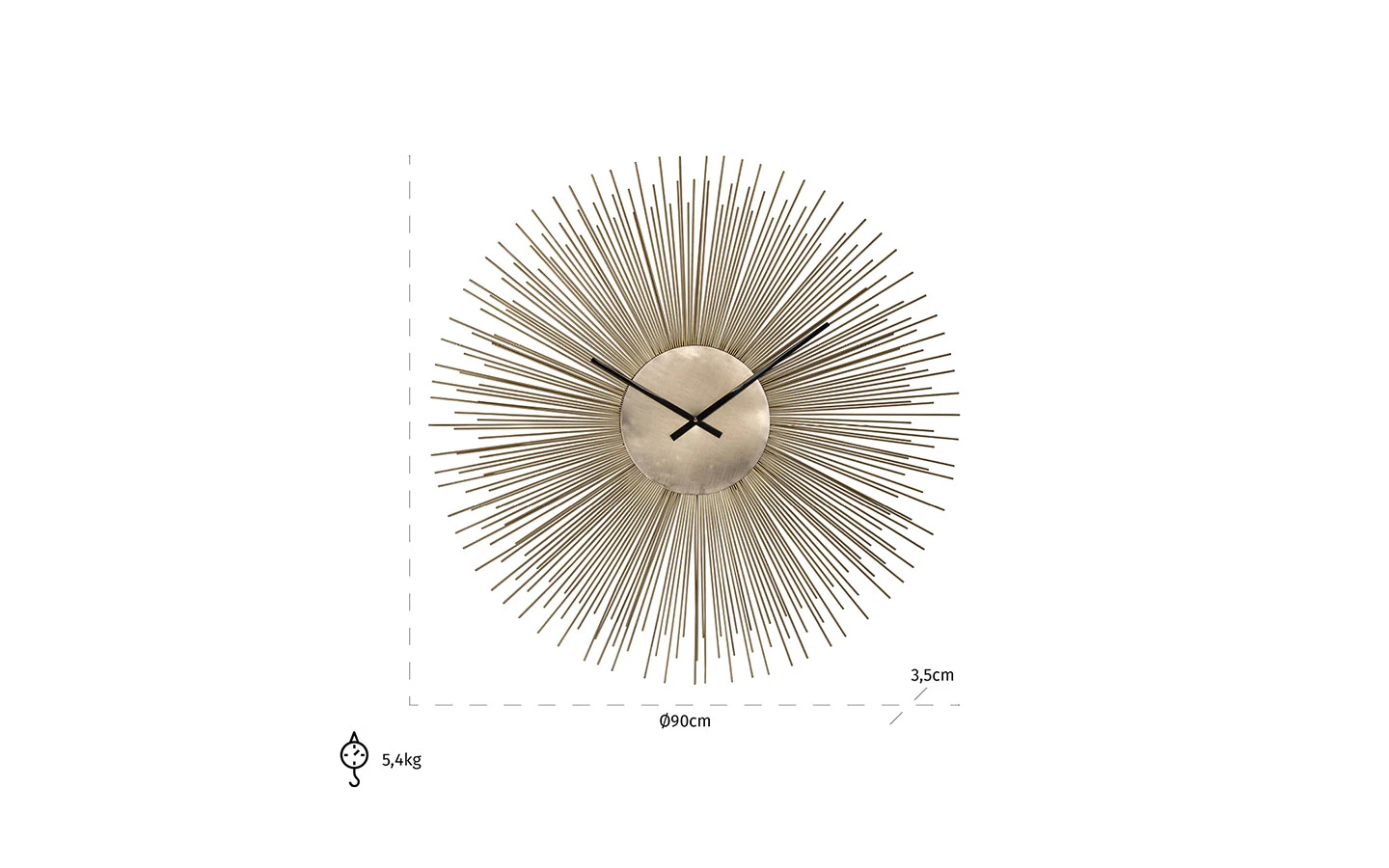 CHASIN от Richmond Interiors е впечатляващ стенен часовник, който съчетава артистичен дизайн с елегантна визия. Изработен от метал с лъскаво златно покритие, този аксесоар придава усещане за лукс и изтънченост на всяко пространство. Със своята изчистена кръгла форма и линии, наподобяващи слънчеви лъчи, часовникът CHASIN е идеален за интериори в стилове като „hotel chic“, съвременен минимализъм или класическа елегантност. Той може да бъде поставен върху стени в дневни, кухни или офиси, добавяйки стилен акцент към интериора. Този часовник е част от колекцията Richmond Decoration и е отличен избор за тези, които търсят функционален и естетически издържан декоративен елемент за своя дом или офис.