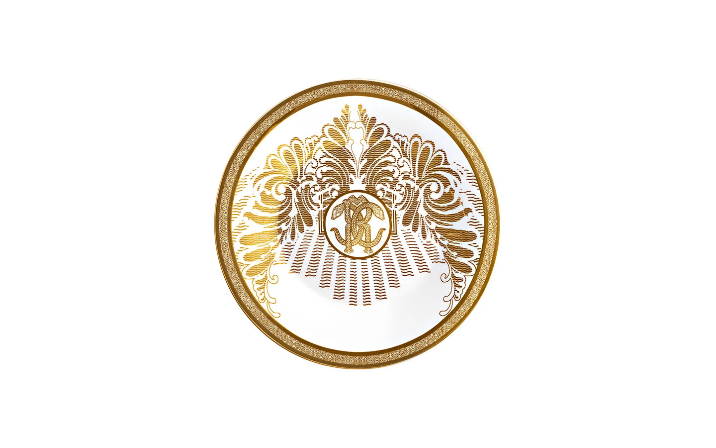 Чиния от колекцията Royal от Roberto Cavalli Home. Зашеметяващ дизайн, изработен от 100% бял костен порцелан и злато.