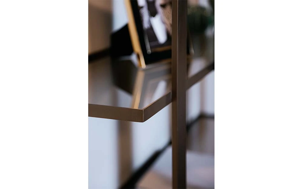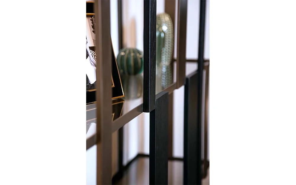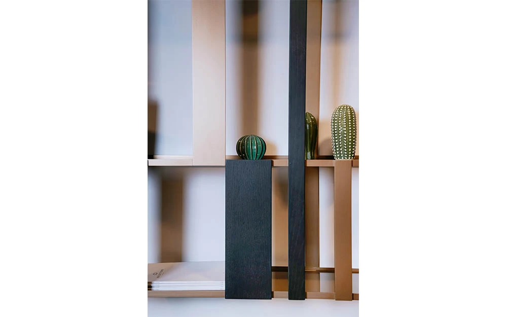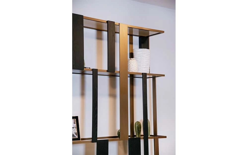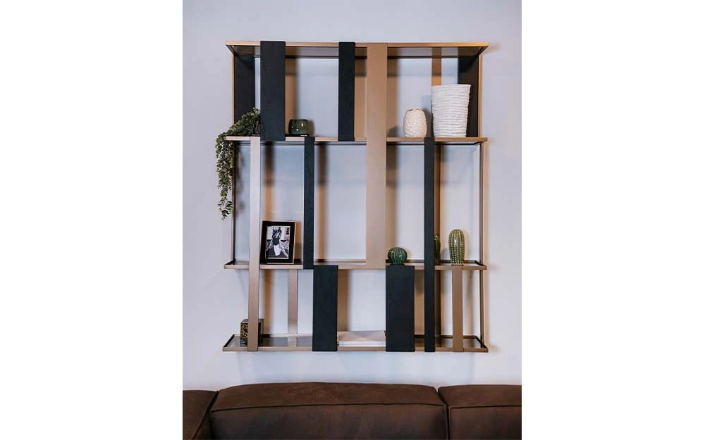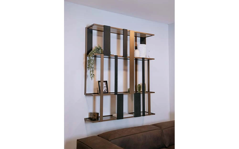 Библиотека DALL е част от колекцията на италианския производител SHAKE DESIGN. Структурата й е от метал в бронзов финиш. Рафтовете на библиотеката са от стъкло в бронзов цвят. Структурни елементи от ясен в черен финиш. Библиотеката е за монтаж към стена.