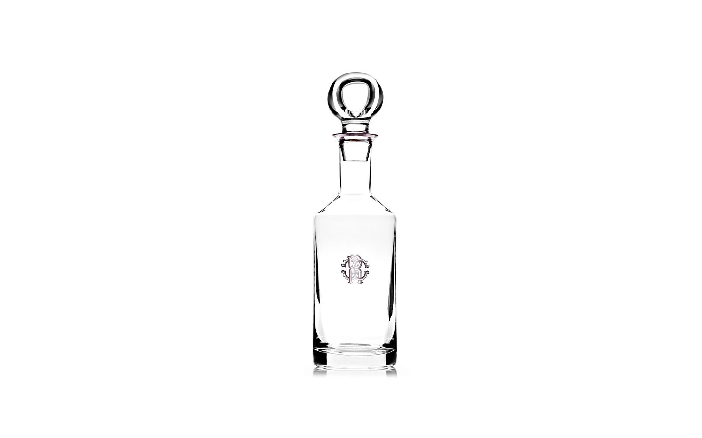 Декантер от колекцията Monogramma Platin на Roberto Cavalli Home Luxury Tableware. Изработен е от оловен бляскав кристал с детайли от платина и логото на Roberto Cavalli.