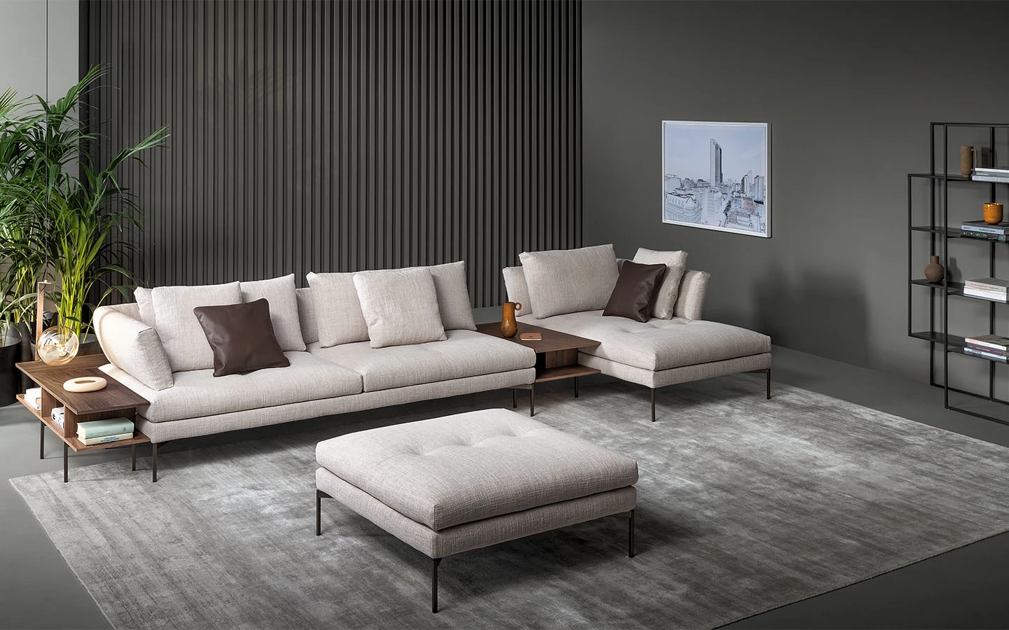 Благодарение на своите универсални елементи, колекцията от модулни дизайнерски дивани ALIANTE придобива различни, интересни конфигурации за всекидневната, с акцент върху персонализирането. Системата се допълва от страничните масички ALIANTE, налични в орех Canaletto или с керамичен плот, изработени в различни форми и размери – аксесоари, които играят с пространството, когато са разположени отстрани, пред дивана или между два елемента от композицията.