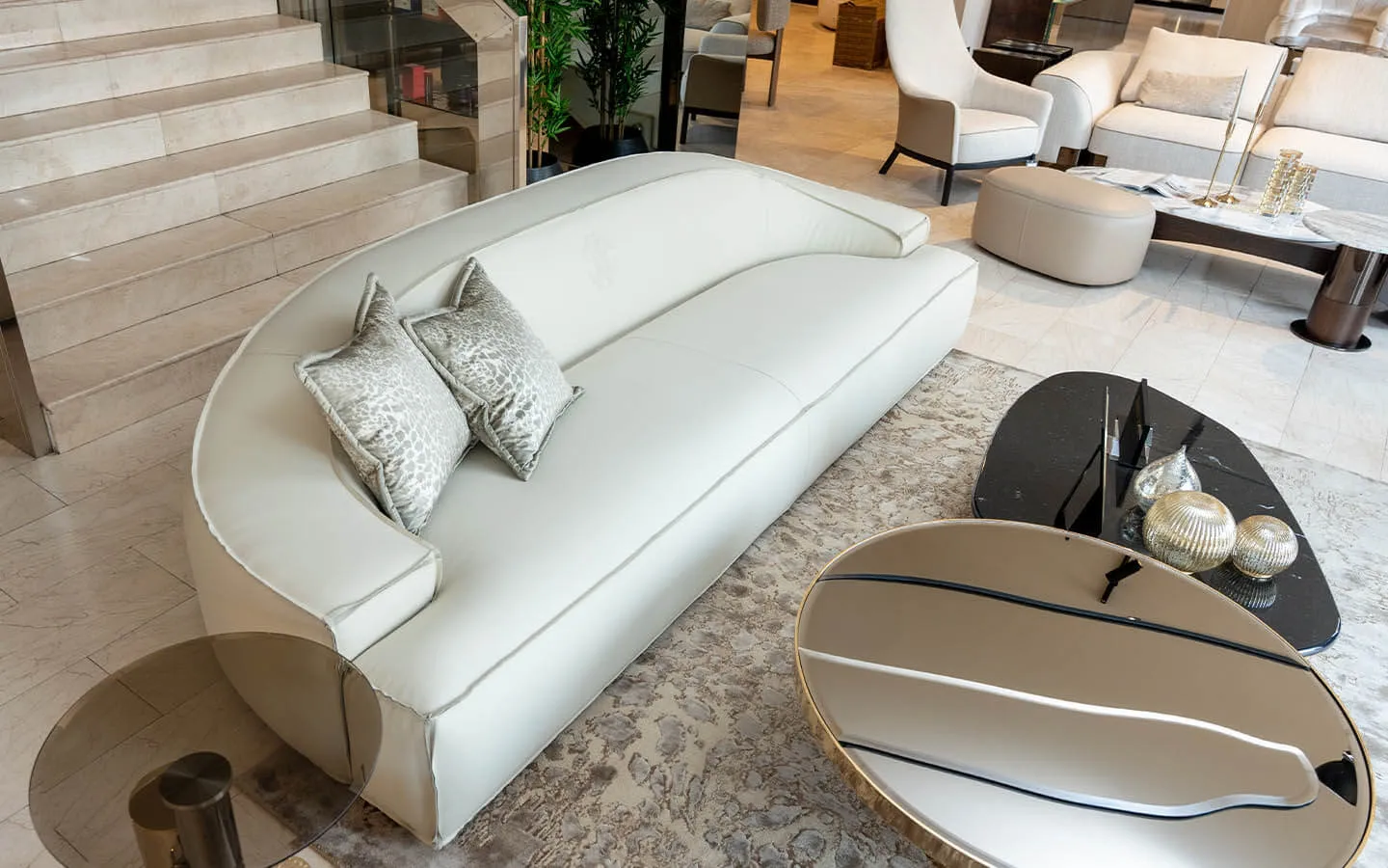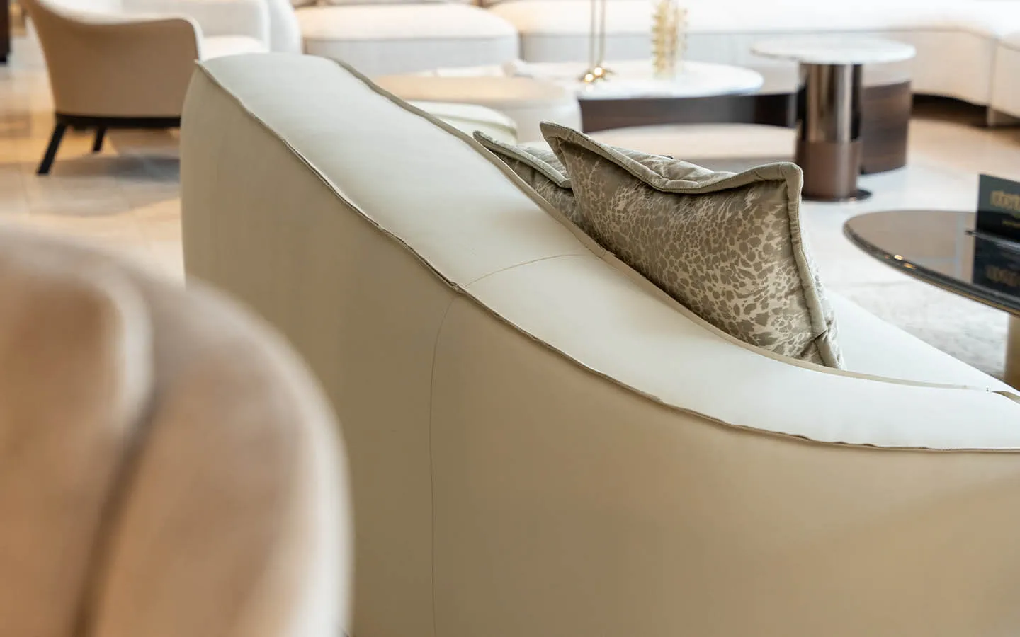 ASSAL от Roberto Cavalli Home Interiors е луксозен диван с меки, органични форми и силно изразено присъствие, създаден да внесе усещане за комфорт, елегантност и чувственост в интериора. Дизайнът му е вдъхновен от природни форми и носи плавен, обгръщащ силует, който приканва към релакс, като същевременно запазва изискан и балансиран характер. Конструкцията е изработена от масивна дървесина и слоеста дървесина, осигуряваща стабилност и дълготрайност, а седалките са с пълнеж от високоплътна полиуретанова пяна с мемори слой, който гарантира мекота, удобство и отлична опора при сядане. Диванът може да бъде тапициран с текстил или естествена кожа от колекцията на марката, като фините декоративни шевове подчертават формите и качеството на изработката. Отличителен акцент е възможността за добавяне на емблематичната RC Snake бродерия на предната част на облегалката, която придава разпознаваем и луксозен почерк. ASSAL е диван, който съчетава комфорт, майсторска изработка и характерния стил на Roberto Cavalli, превръщайки се в впечатляващ център на всяко елегантно дневно пространство.