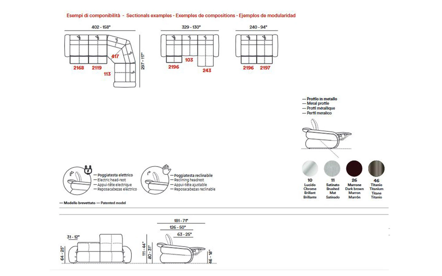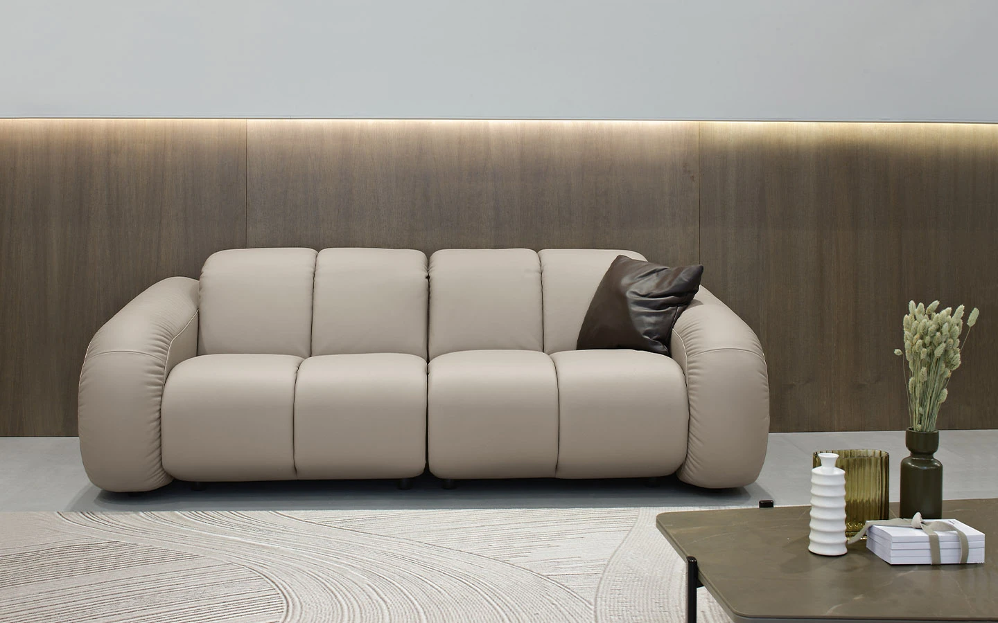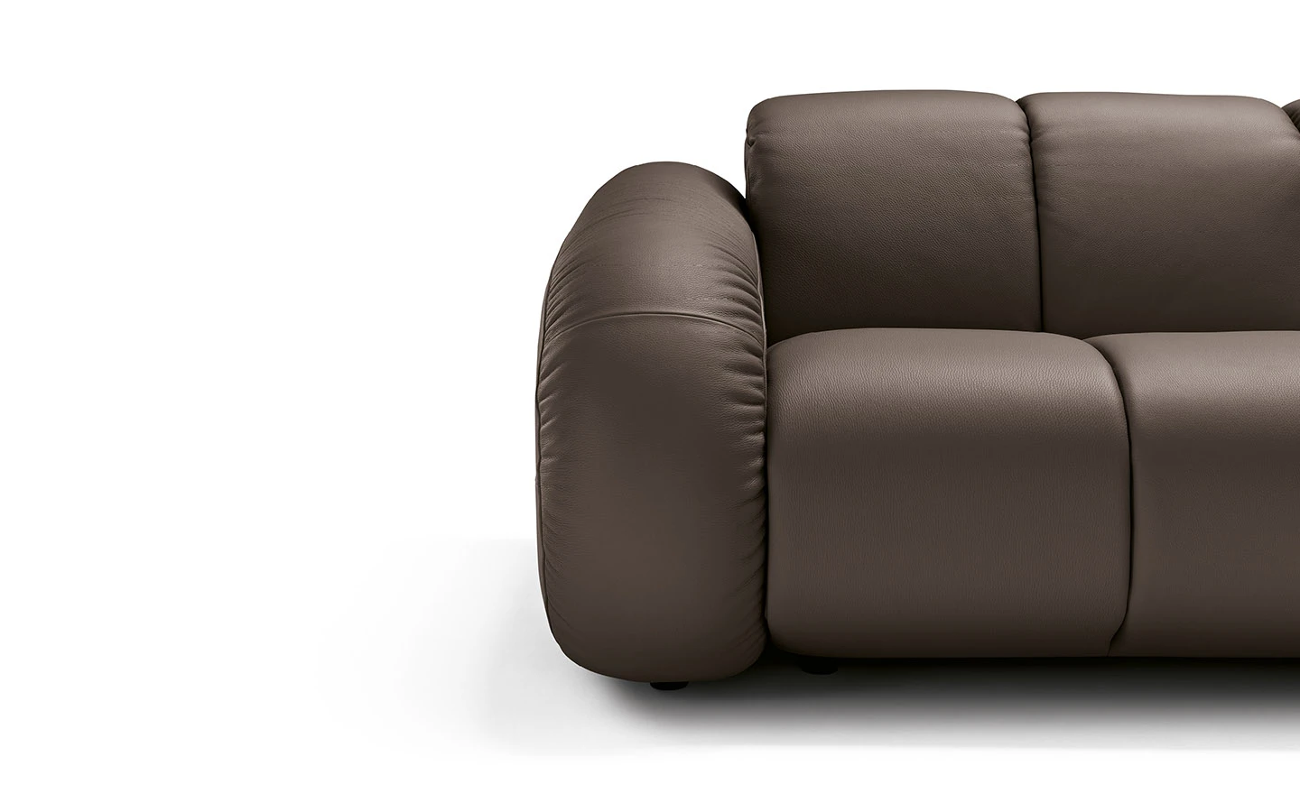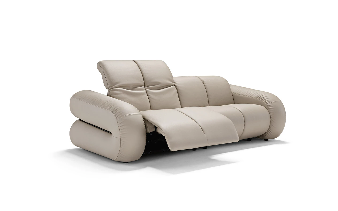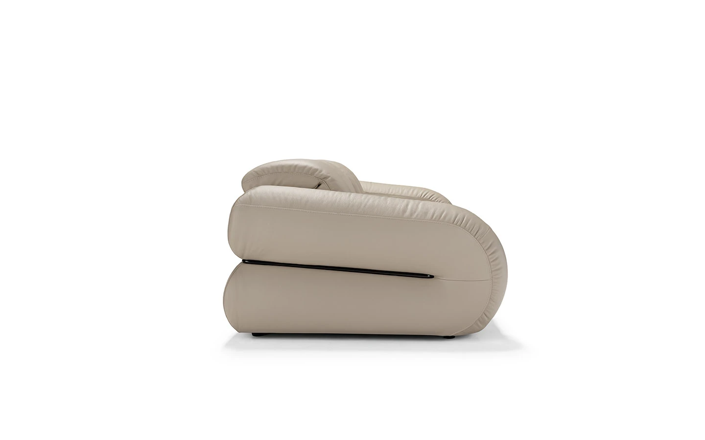 Диванът BOMBER от Max Divani е създаден с акцент върху комфорта и съвременната естетика. Предлага се в конфигурации с две или три места, като разполага с широки, удобни подлакътници, просторни седалки и регулируеми облегалки за глава и крака, които допринасят за максимален комфорт. Закръглените му форми и меки контури създават усещане за уют и привлекателност, което насърчава релаксацията. Характерен дизайнерски елемент е подлакътника, който елегантно се извива навътре и е подчертан с декоративен метален профил, добавящ изтънченост към външния вид на дивана. Ръчно изработен в Италия, диванът BOMBER е пример за ангажимента на Max Divani към качество и дизайн, превръщайки го в стилно и комфортно допълнение към всяка всекидневна.