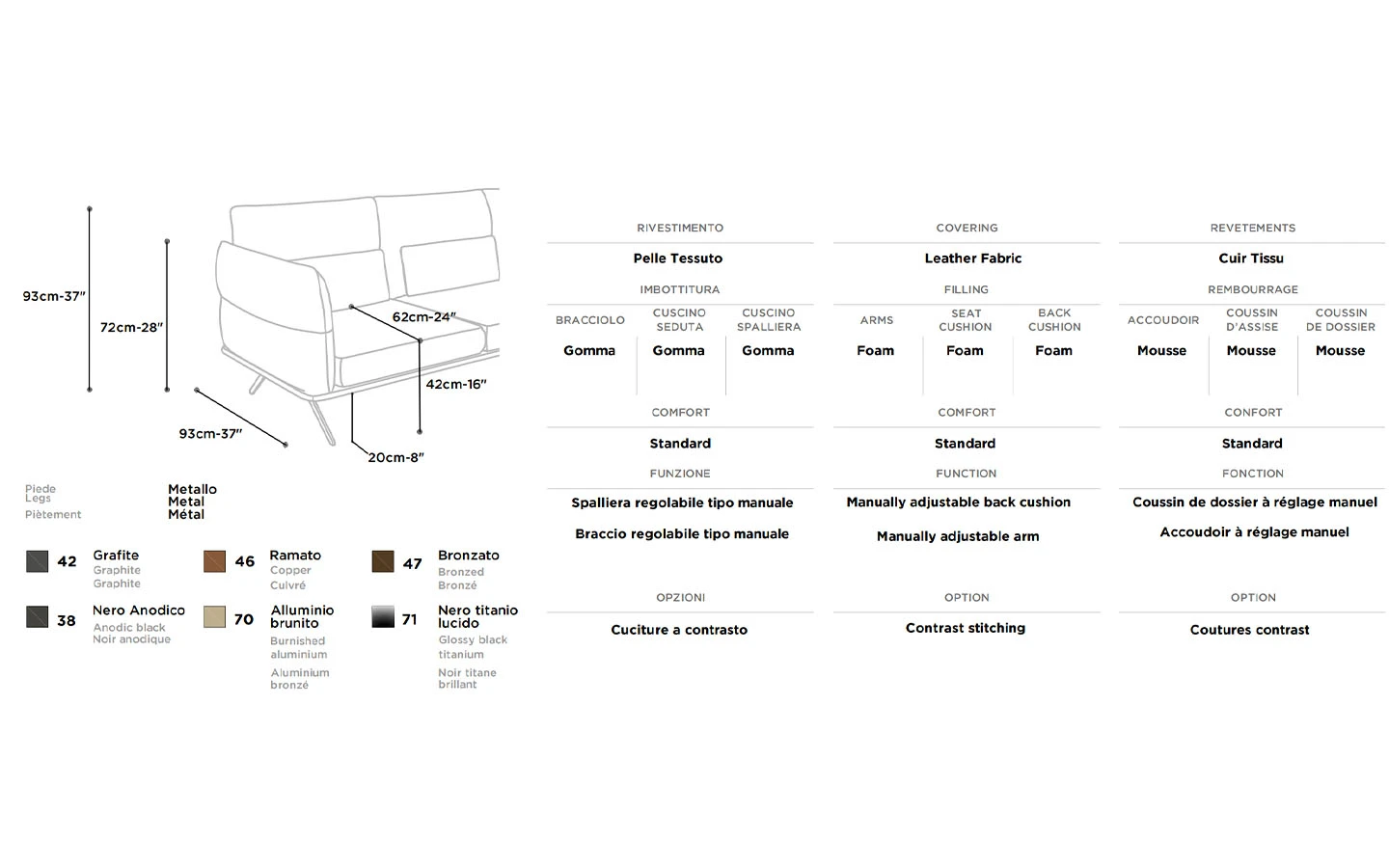 Диванът CAPITOLO на Franco Ferri е проектиран да бъде едновременно луксозен и удобен, което го прави отличен избор за всяко жилищно пространство. Той предлага елегантно и комфортно седене, подобрено с регулируеми облегалки, които позволяват персонализирано изживяване. Този модулен диван може да се адаптира към различни конфигурации, отговаряйки на разнообразни нужди и предпочитания. Механизмът за накланяне добавя допълнителен комфорт, правейки го перфектен за релаксация.