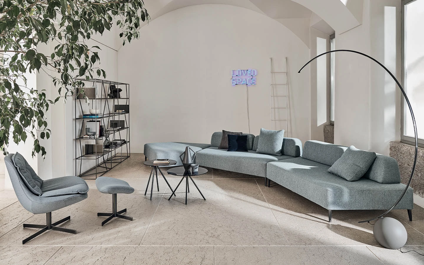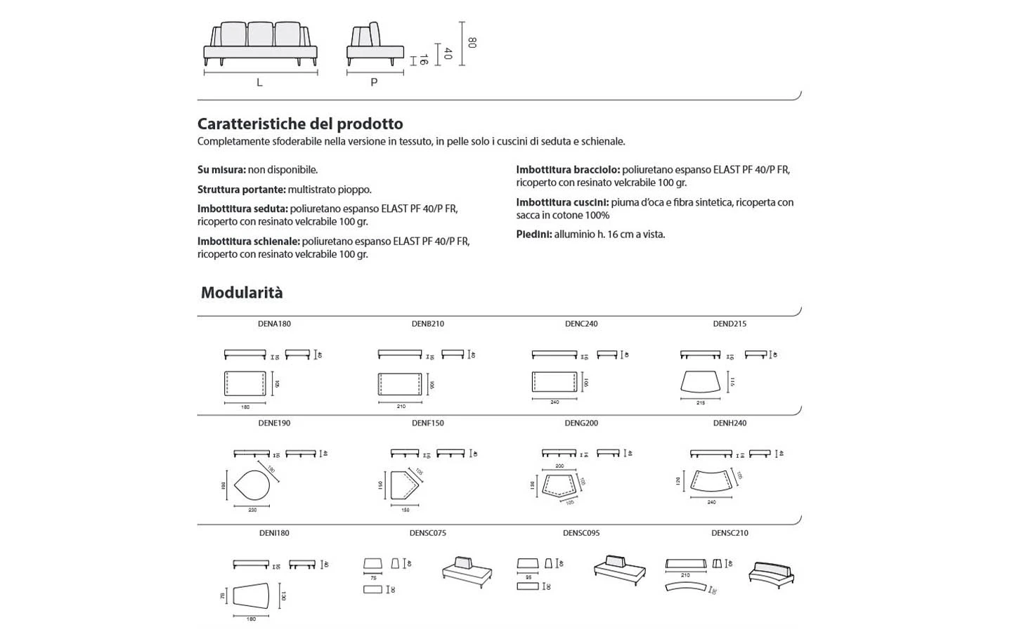 Диванът DENVER от Bontempi Casa, проектиран от Carlo Bimbi, представлява футуристичен подход към концепцията за „диван система“. Той е модулен модел с отворени и просторни форми, а подвижните облегалки са стабилно стоящи чрез специални тежести, което позволява гъвкави конфигурации според различните нужди. Формалният минимализъм на дивана е балансиран от плътната тапицирана седалка, която осигурява едновременно стил и комфорт. Модулният дизайн позволява гъвкаво подреждане на елементите, предлагайки различни начини за използване и адаптация към всякакви пространства. Различните форми на модулите могат да се комбинират, за да създадат линейни или ъглови композиции, като внимателната изработка на тапицерията отразява високите стандарти на италианското занаятчийство. DENVER се предлага в различни конфигурации, включително варианти с лежанка, което допринася за неговата функционалност и способността му да се адаптира към разнообразни жилищни пространства. В комбинация със своята модулност, висококачествени материали и прецизни дизайнерски детайли, DENVER е стилен и практичен избор за съвременния дом.