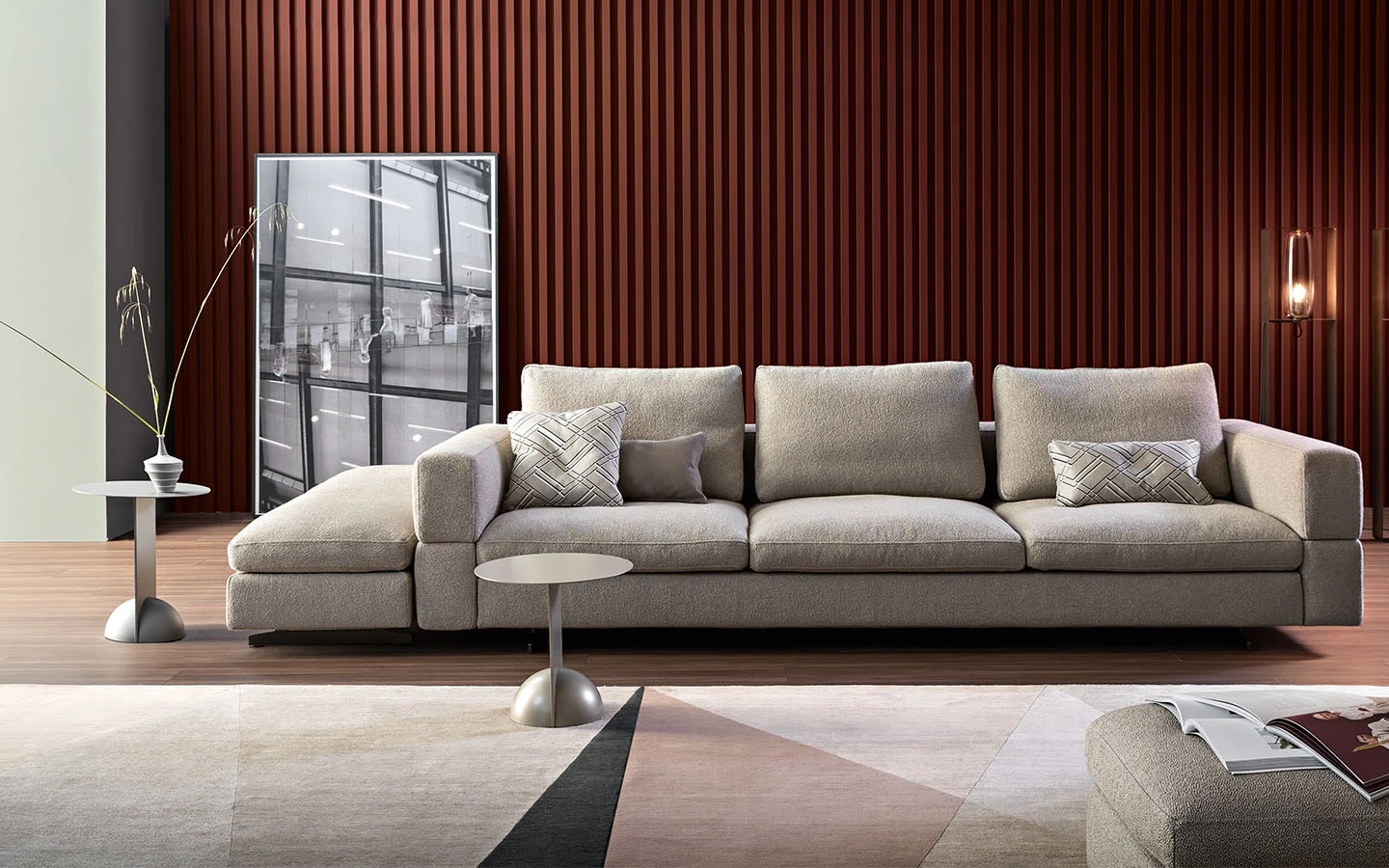 EVER MORE се откроява със своята облегална възглавница, която обгръща седалките и придава на дневната зона нотка на мекота и елегантност. Ключовата дума е максимална персонализация. Благодарение на голямото разнообразие от елементи, от които можете да избирате, това е изключително универсален модерен диван, който се адаптира към всеки стил или пространствени изисквания. EVER MORE дава възможността да създадете перфектна композиция на дивана, комбинирайки разнообразие от модули, като пуфове, ъгли и лежанки. EVER MORE може също така да бъде поставен в центъра на стаята, за да създаде социално пространство.