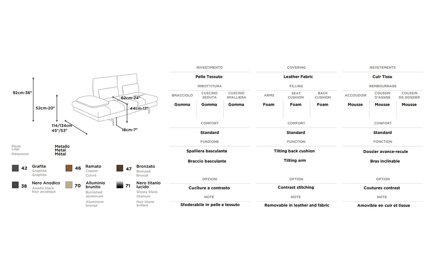 Моделът LE BAMBOLE предлага възможност за регулиране на облегалката и на подлакътника. По този начин се увеличава дълбочината и пространството на на сядане.