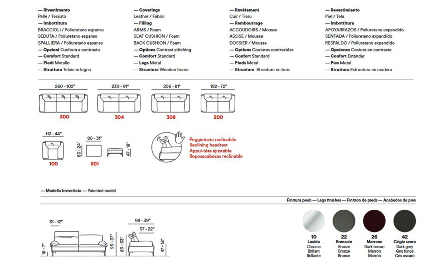 NORMA е италиански модулен диван от колекцията на италианския производител Max Divani. Диванът може да бъде тапициран в дамаска, кожа или еко кожа – материал и цвят по избор на клиента. Краката са изработени от метал – финиш по избор на клиента. Диванът е модулен, което означава, че може да се създаде конфигурация, която да отговаря на желаните от клиента размери и форми. Седални и облегални възглавници с пълнеж от полиуретанова пяна. Облегалката е с възможност за регулиране във височина. Цената на дивана се формира на база на избора на размер и вид тапицерия.