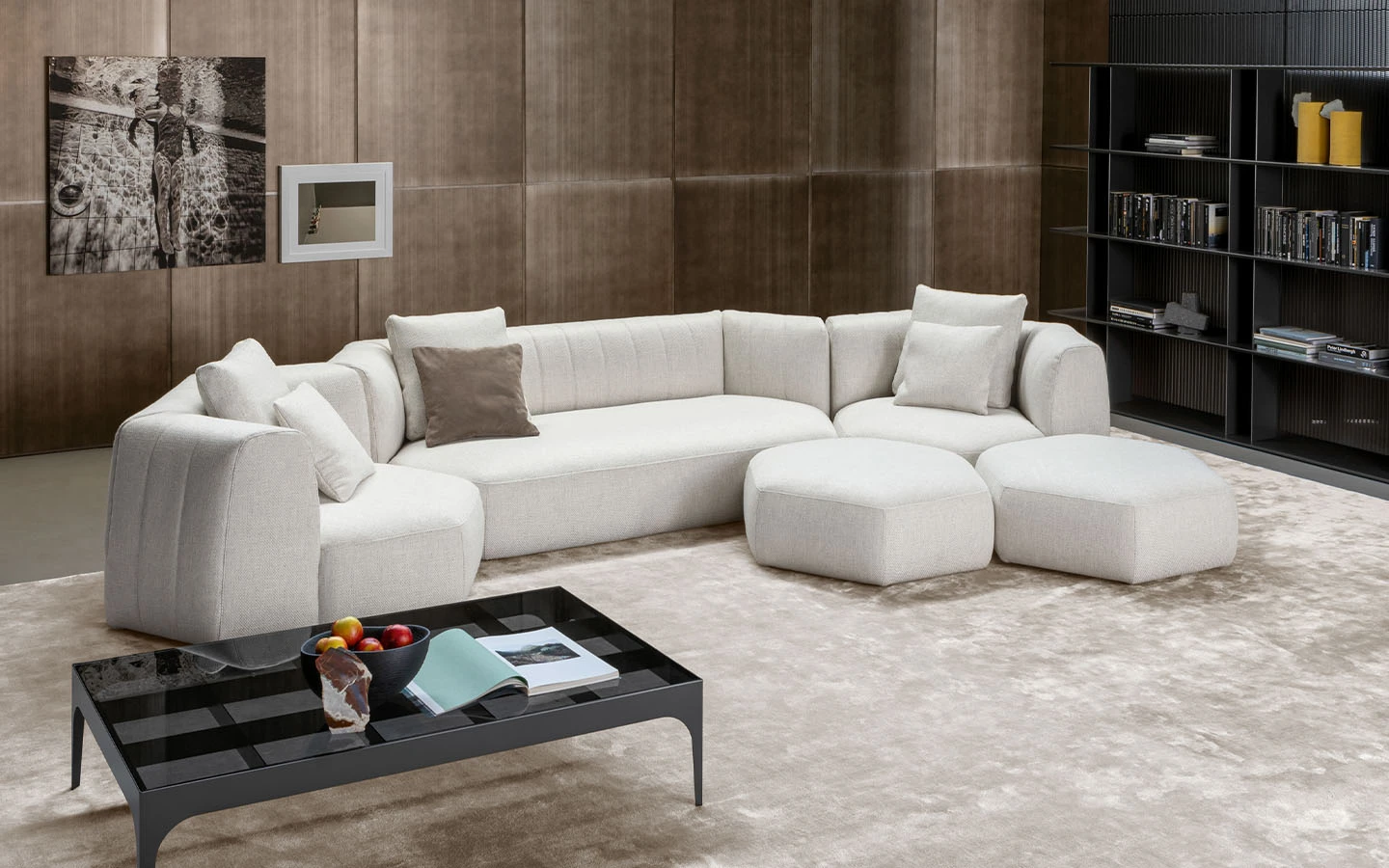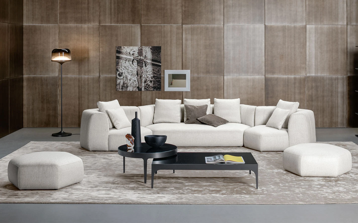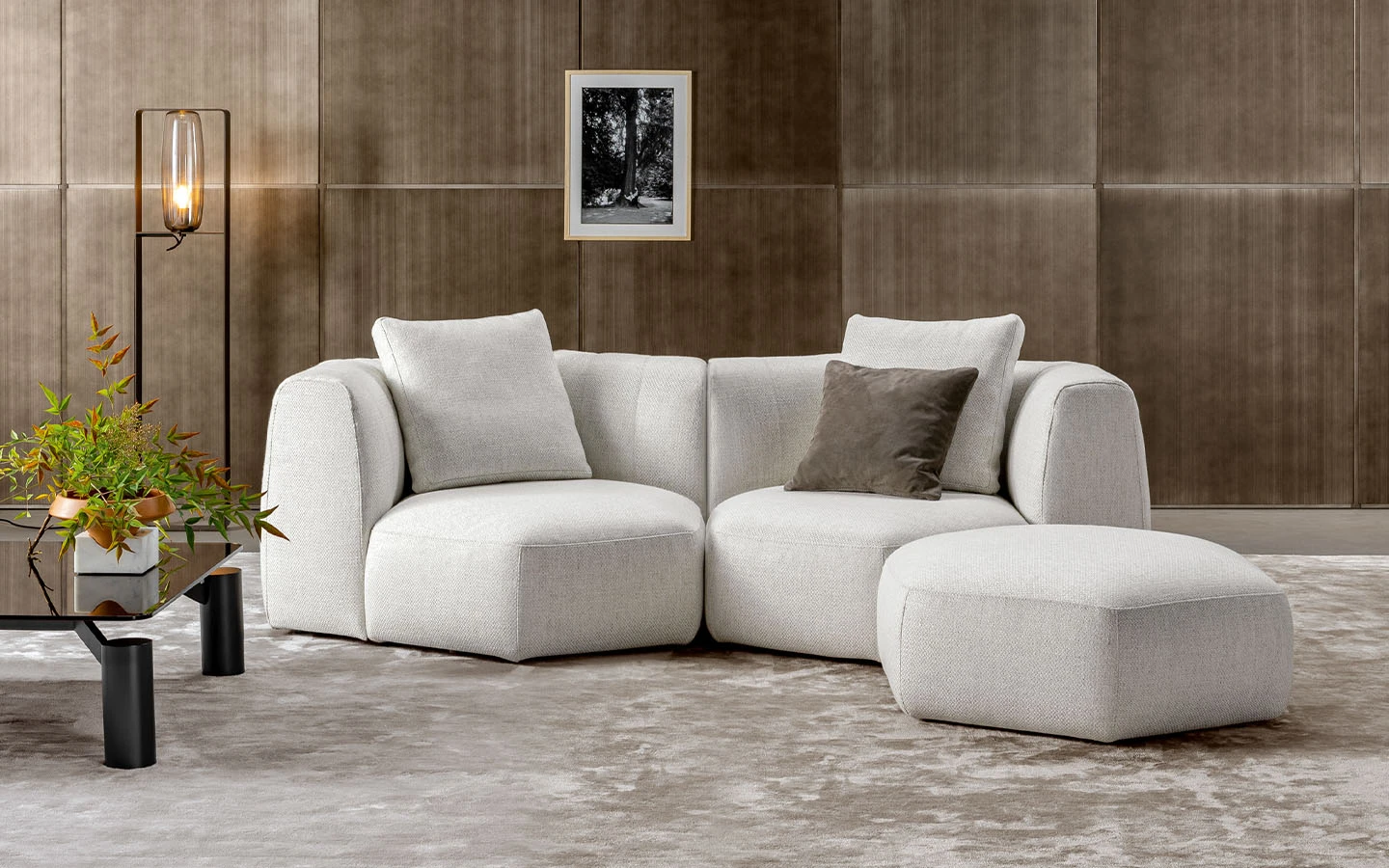 PANORAMA NEW е модулен диван, способен да създаде невиждано домашно пространство, предлагайки места за срещи, острови на комфорт и истински убежища, в които можете да се отпуснете с пълна свобода. Неговата геометрия стимулира съчетаването на различни елементи, преобразявайки дневната зона в най-топлата и приветлива среда. Колекцията дивани PANORAMA NEW се основава на особен елемент: пуф с шестоъгълна форма, който, с подлакътници и облегалка, става фотьойл и който може да се комбинира с други фотьойли и дивани, за да се получат най-разнообразни конфигурации.