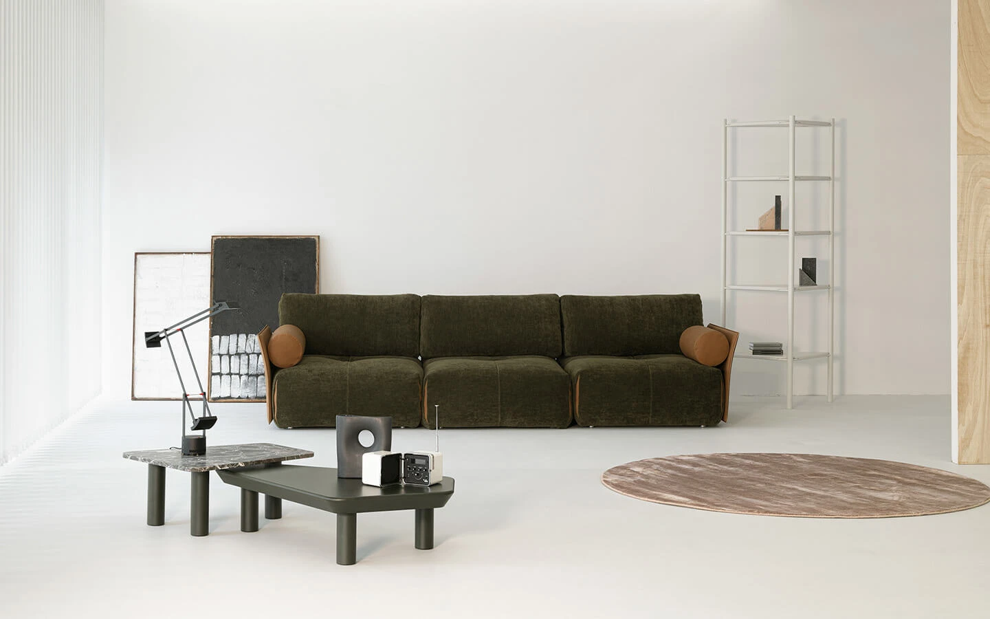 TAB F 2022 от CIERRE е съвременен италиански диван с изразен модулен характер, създаден да предложи максимална гъвкавост, комфорт и модерна естетика. Дизайнът се отличава с изчистени, балансирани линии и хармонични геометрични форми, които създават усещане за визуална лекота и елегантност. Моделът умело комбинира различни материали и текстури, като съчетава кожа и текстил в единна, модерна визия, подчертаваща неговия съвременен характер. Благодарение на модулната си структура, TAB F 2022 позволява създаването на разнообразни конфигурации – от компактни дивани до големи ъглови композиции, адаптирани към конкретното пространство и начин на живот. Диванът се предлага в богата гама от първокласни кожи и текстили, с възможност за избор на цветове и комбинации, което го прави идеален избор за модерни интериори, в които дизайнът, функционалността и персонализацията са водещи.