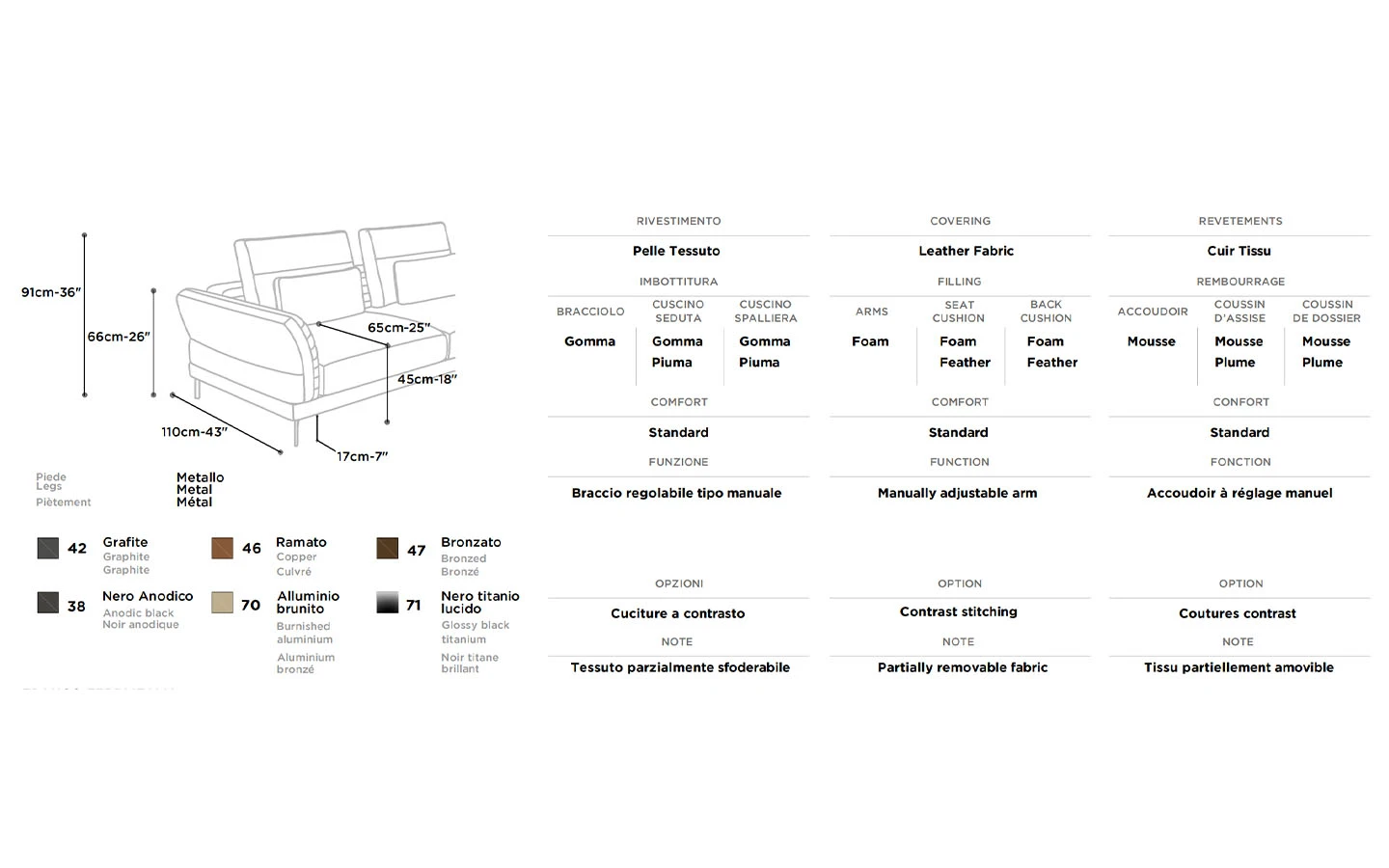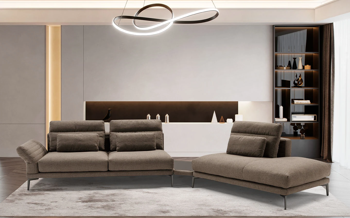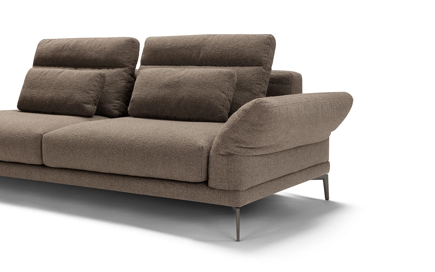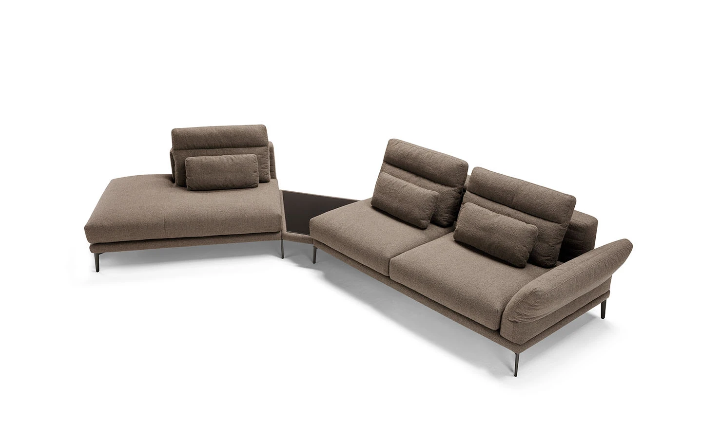 Разнообразност и динамика характеризират TENCO, модулен диван с ръчно регулируеми подлакътници, украсени с капитонаж на райе. Диванът е оборудван с двойни облегални възглавници. Като опционален аксесоар може да бъде добавена практична и функционална интегрирана масичка с плот от стъкло или дърво.