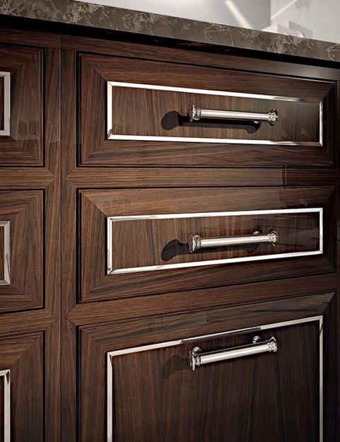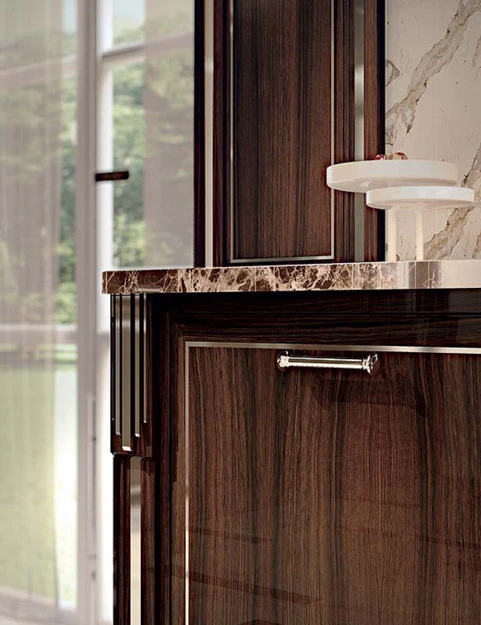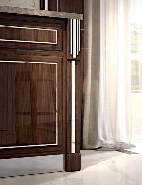 Изключителна и красива е уникалната по рода си елегантната метална интарзия в рамката на вратичката, която създава неповторимия почерк на колекцията.